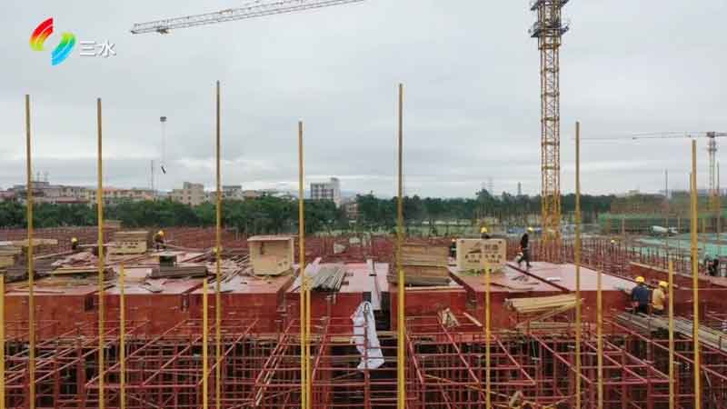 在佛山市科達裝備智能制造基地項目建設現(xiàn)場看到,盡管下著細雨,工人們也干勁十足,加緊施工,塔吊、運輸車輛等也忙碌地運轉著。