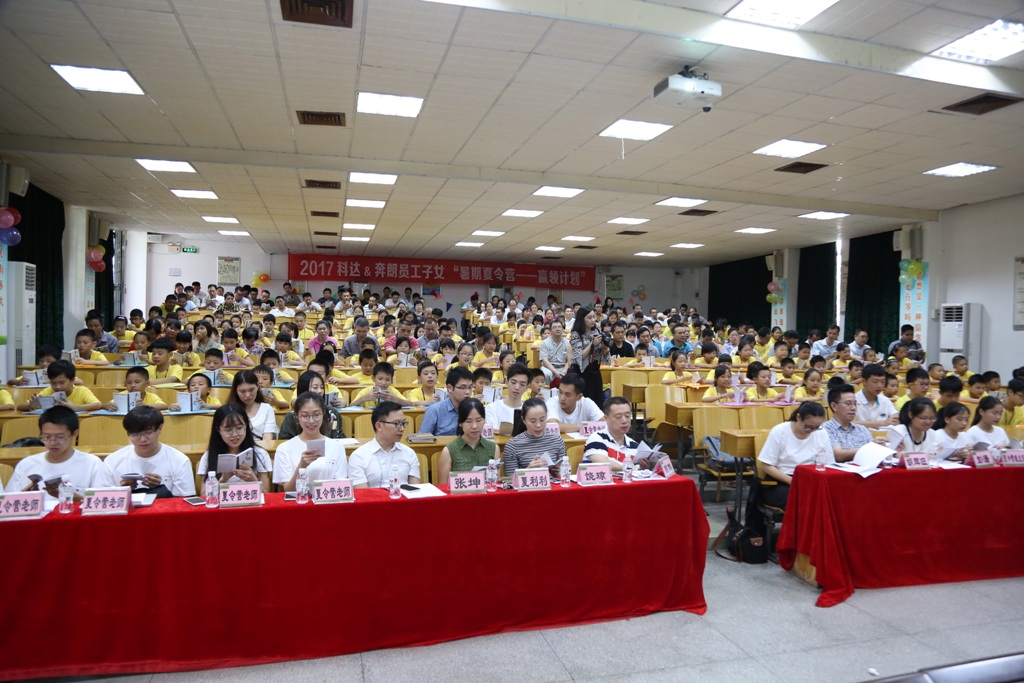 一陣?yán)世实淖x書聲,回蕩在美好的夏日高空。7月24日,科達(dá)潔能2017年“暑期夏令營(yíng)——贏領(lǐng)計(jì)劃”分別在廣東基地(今年廣東基地夏令營(yíng)活動(dòng)設(shè)在陳村職校進(jìn)行)與安徽基地同時(shí)開營(yíng)。科達(dá)潔能副總裁周鵬,人力資源總監(jiān)蘇順兵、董辦主任兼人力資源部經(jīng)理饒瓊及奔朗公司副總經(jīng)理胡輝旺,東西方文化培訓(xùn)中心負(fù)責(zé)人關(guān)琪等領(lǐng)導(dǎo)、夏令營(yíng)老師、員工子女和家屬300余人出席開營(yíng)儀式。廣東基地139名(含奔朗公司)、安徽基地23名共162名員工子女相聚科達(dá),將一同度過一個(gè)難忘而有意義的暑期。