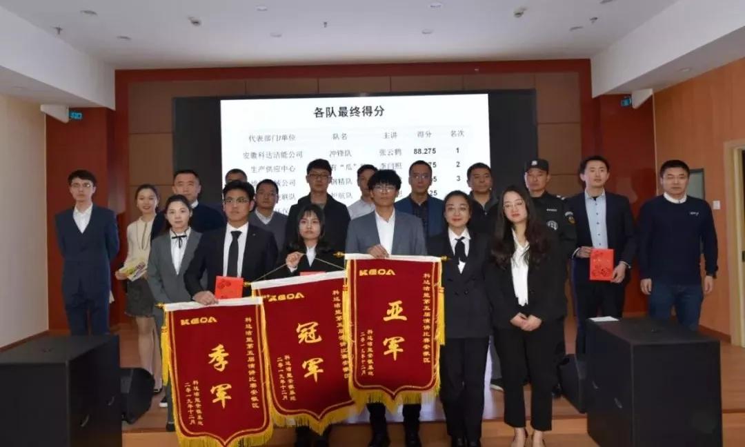 與此同時(shí),科達(dá)潔能第五屆演講比賽(安徽賽區(qū))決賽已于12月2日?qǐng)A滿結(jié)束。十支參賽隊(duì)伍進(jìn)軍到最終的決賽舞臺(tái)。憑借出色的現(xiàn)場(chǎng)發(fā)揮,安徽科達(dá)潔能的“沖鋒隊(duì)”榮獲冠軍,安徽生產(chǎn)供應(yīng)中心的“與你有瓜隊(duì)”摘得亞軍,墻材機(jī)械公司的“鋼精隊(duì)”收獲季軍?!白钍軞g迎演說家獎(jiǎng)”由安徽科達(dá)潔能“沖鋒隊(duì)”主講張?jiān)弃Q與墻材機(jī)械公司“鋼精隊(duì)”主講杭永成摘得。