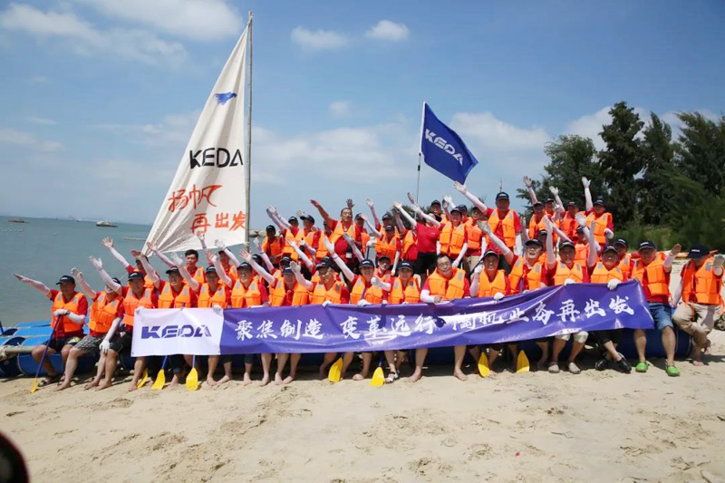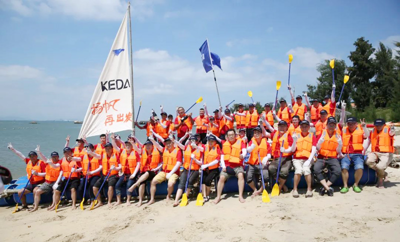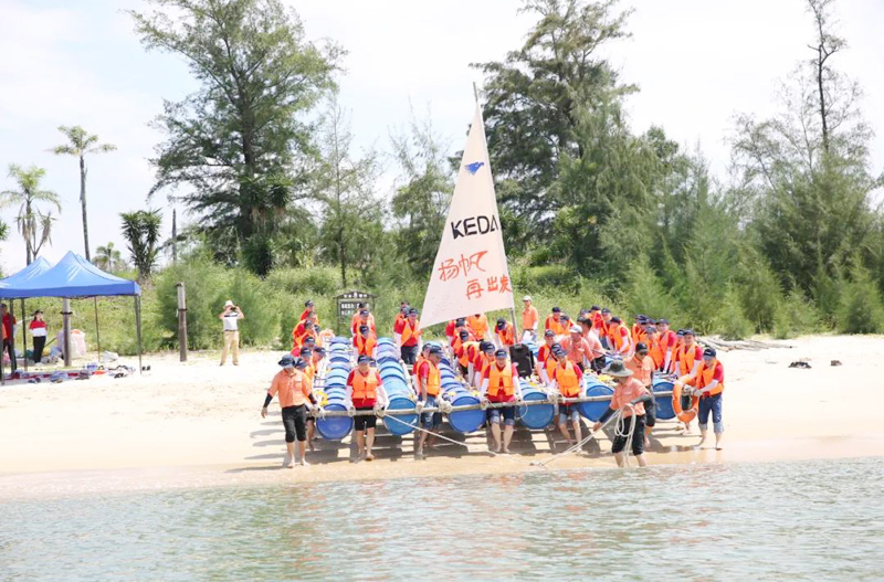 科達陶機經(jīng)營班子揚帆出海,打破溝通壁壘,實現(xiàn)打造高效協(xié)作團隊的目標。成員齊心協(xié)力,從無到有,利用材料合力搭建一艘完整的大帆船,親手繪制船帆。邊程董事長為大帆船舉行升帆儀式,并與楊學先總經(jīng)理一起帶領團隊破浪遠航。面向一望無際的大海,每一個獨立的個體都是渺小的,只有依靠團隊的協(xié)作,才能共同抵達終點。全體船員堅守同舟共濟、誓奪勝利的信念,以團隊的力量讓成功志在必得。