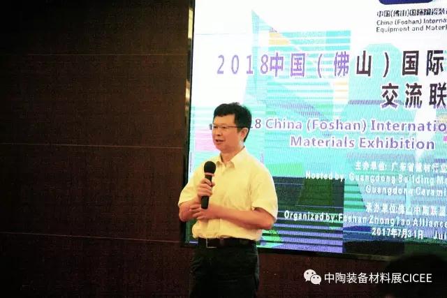 7月31日晚,2018中國(guó)(佛山)國(guó)際陶瓷裝備與材料展覽會(huì)交流聯(lián)誼會(huì)(以下簡(jiǎn)稱(chēng)“中陶裝備材料展”)在佛山南莊華夏明珠大酒店舉行。廣東省建筑材料行業(yè)協(xié)會(huì)會(huì)長(zhǎng)、廣東科達(dá)潔能股份有限公司董事長(zhǎng)邊程,佛山市工商業(yè)聯(lián)合會(huì)(總商會(huì))主席、南莊陶瓷產(chǎn)業(yè)促進(jìn)會(huì)首屆理事會(huì)會(huì)長(zhǎng)、廣東新明珠陶瓷集團(tuán)有限公司董事長(zhǎng)葉德林,南莊鎮(zhèn)人民政府原副鎮(zhèn)長(zhǎng)冼永恒,廣東潭洲國(guó)際會(huì)展有限責(zé)任公司總經(jīng)理喬伊· 帕澤(Joey Pather),廣東省建材行業(yè)協(xié)會(huì)創(chuàng)會(huì)會(huì)長(zhǎng)、佛山中陶聯(lián)盟科技有限公司董事長(zhǎng)吳一岳,廣東陶瓷協(xié)會(huì)會(huì)長(zhǎng)、佛山中陶聯(lián)盟科技有限公司董事陳環(huán),中陶協(xié)陶瓷技術(shù)裝備分會(huì)執(zhí)行秘書(shū)長(zhǎng)、佛山中陶聯(lián)盟科技有限公司董事總經(jīng)理羅青等行業(yè)大咖,以及陶瓷企業(yè)代表、配套裝備企業(yè)代表、色釉料企業(yè)代表等200余位嘉賓出席了交流聯(lián)誼會(huì),共同就2018中陶裝備材料展(CICEE)籌辦及行業(yè)發(fā)展等相關(guān)話(huà)題展開(kāi)深入探討,幾十家知名配套企業(yè)代表在現(xiàn)場(chǎng)簽訂參展協(xié)議書(shū)。