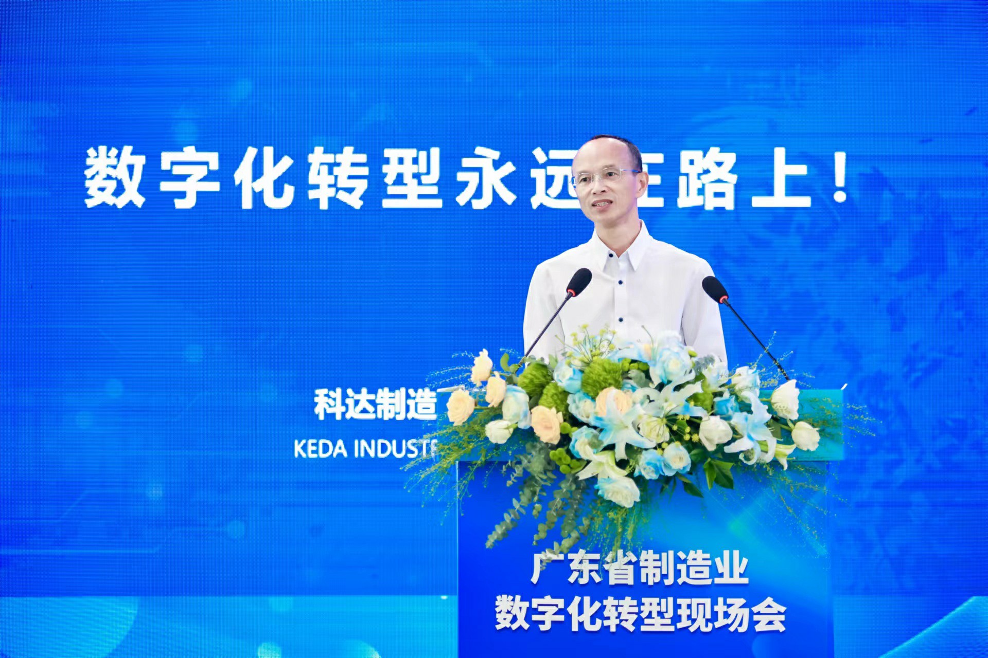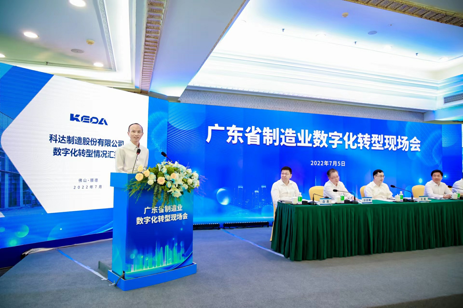 7月5日上午,廣東省制造業(yè)數(shù)字化轉(zhuǎn)型現(xiàn)場會在佛山順德華桂園召開。廣東省常委、副省長王曦,副秘書長許典輝,廣東省工業(yè)和信息化廳廳長涂高坤,佛山市委書記鄭軻、市長白濤等省、市領(lǐng)導(dǎo)出席了會議。廣汽集團、華為、格力電器、美的集團、科達(dá)制造等企業(yè)參會,科達(dá)制造董事、總經(jīng)理楊學(xué)先在會上作為企業(yè)代表介紹了公司數(shù)字化轉(zhuǎn)型經(jīng)驗。