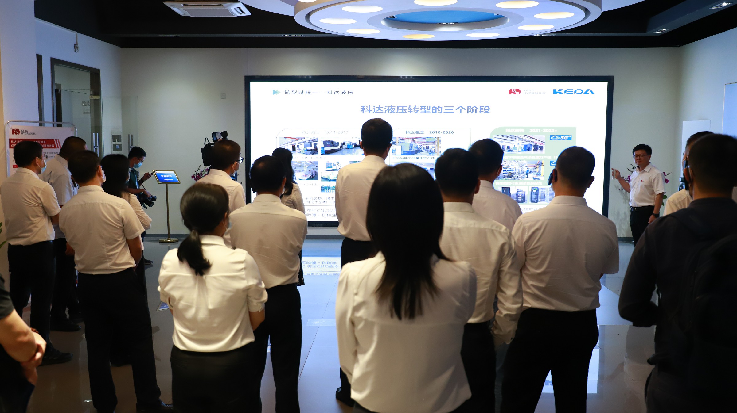 下午,省工信廳,各地市副市長、工信局等領(lǐng)導(dǎo)及企業(yè)代表一行近70人參觀了科達(dá)液壓公司數(shù)字化轉(zhuǎn)型車間,公司董事長邊程、副總裁周鵬,科達(dá)液壓總經(jīng)理楊軍等熱情接待了考察團一行。