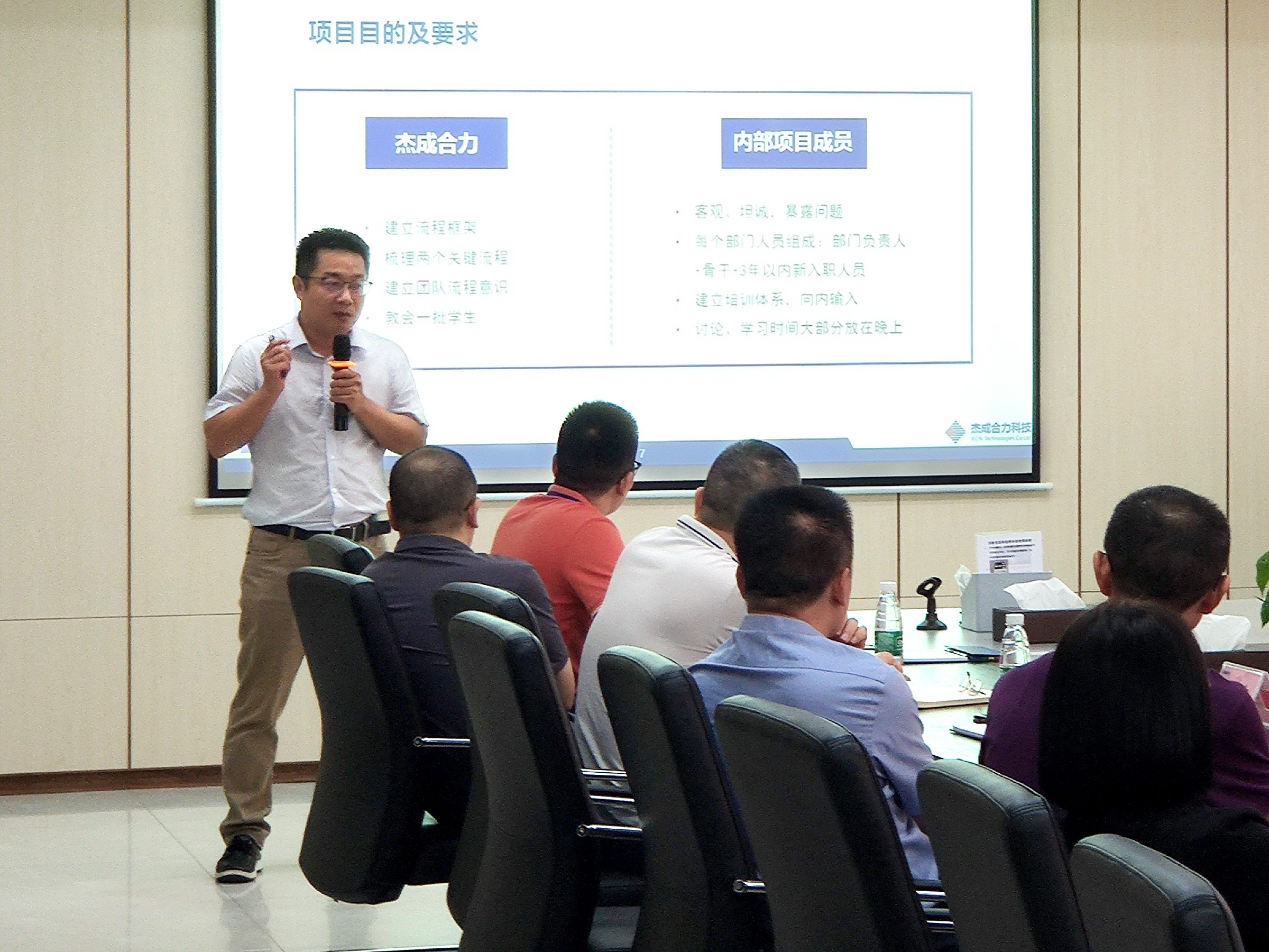 杰成合力資深顧問宋軍杰先生對項目流程架構(gòu)規(guī)劃、流程治理機制、項目管理制度及項目實施計劃等內(nèi)容作了詳細(xì)介紹。項目經(jīng)理龍威舜、項目成員潘建環(huán)均表示對項目充滿信心與期待,會全力配合項目實施工作,力求高效有序推進(jìn)。