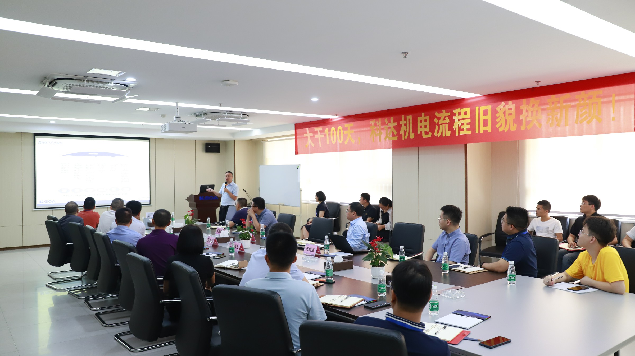 會議開始,由佛山科達(dá)機電總經(jīng)理何衛(wèi)東介紹項目背景,從公司管理的痛點出發(fā),闡述了進(jìn)行流程管理變革的目的及要求,并強調(diào)構(gòu)建“以客戶為中心”的流程化組織的重要性,要求各部門積極參與、全力投入、改善優(yōu)化。