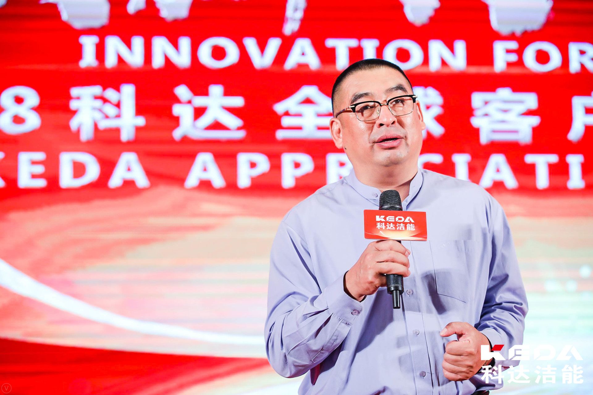 科達(dá)董事長邊程致歡迎詞,他說,每年的這一天都是科達(dá)最幸福的日子,因?yàn)橛衼碜允澜绺鞯貛椭P(guān)心支持科達(dá)的人士歡聚于此。截止到2017年為止,科達(dá)向全球投放了壓機(jī)12600多臺,窯爐600多條,拋光線2000多條,磨邊線接近4000條,自動(dòng)打包線2000條,2017一年科達(dá)售出壓機(jī)554臺,窯爐137條,拋光線169條,磨邊機(jī)457條,包裝線334條,可以說在出貨量上科達(dá)已經(jīng)做到了全球陶瓷機(jī)械的第一,下一步科達(dá)要進(jìn)一步走向世界。2017年科達(dá)的出口比例達(dá)到40%,未來三到五年時(shí)間出口比例有望達(dá)到三分之二,科達(dá)是中國陶瓷行業(yè)養(yǎng)大的最大孩子,“我們期盼著用三到五年成為全世界陶瓷行業(yè)養(yǎng)大的最大的孩子,回報(bào)全球客戶,請繼續(xù)給予我們支持,謝謝你們!”