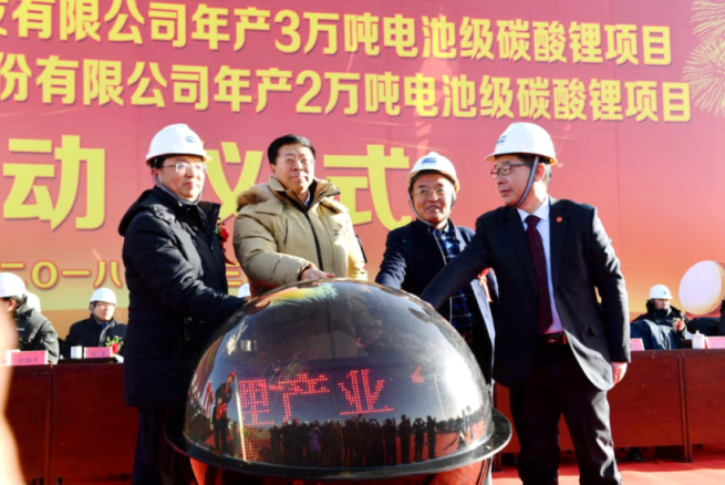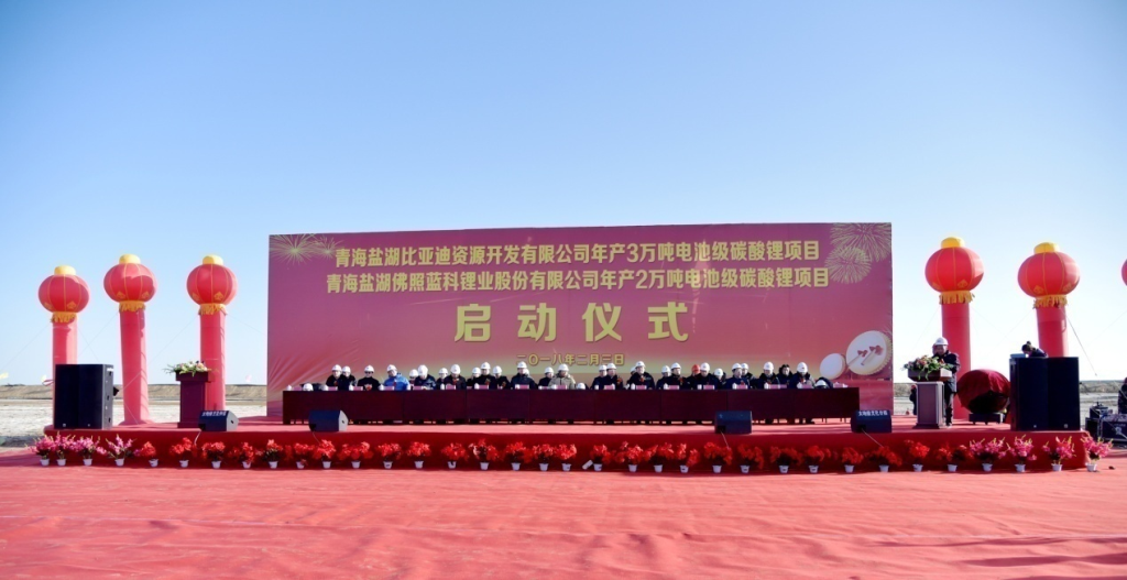 2月3日上午,廣東科達(dá)潔能股份有限公司重點(diǎn)建設(shè)項(xiàng)目——青海鹽湖佛照藍(lán)科鋰業(yè)股份公司(一下簡(jiǎn)稱“藍(lán)科鋰業(yè)”)2萬(wàn)噸電池級(jí)碳酸鋰項(xiàng)目在青海格爾木藍(lán)科鋰業(yè)現(xiàn)場(chǎng)隆重舉行啟動(dòng)儀式,正式開工建設(shè),青海鹽湖比亞迪資源開發(fā)有限公司3萬(wàn)噸電池級(jí)碳酸鋰項(xiàng)目同時(shí)啟動(dòng)。青海省副省長(zhǎng)王黎明親臨現(xiàn)場(chǎng)宣布項(xiàng)目正式啟動(dòng),比亞迪董事長(zhǎng)王傳福、科達(dá)潔能黨委書記李斌、鹽湖股份董事長(zhǎng)王興富與青海省副省長(zhǎng)王黎明共同按動(dòng)啟動(dòng)儀式觸摸球,見證兩個(gè)項(xiàng)目的正式啟動(dòng)。