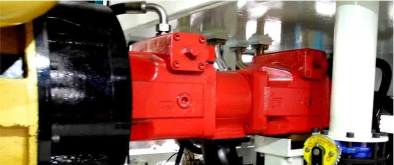 恒功率變量柱塞泵要求:排量835毫升/轉(zhuǎn),轉(zhuǎn)速最高2300轉(zhuǎn)/分鐘,壓力35MPa。因?yàn)樵诖习惭b,空間狹小,只能由一臺(tái)1200P大馬力柴油發(fā)動(dòng)機(jī)直接驅(qū)動(dòng)。這個(gè)要求,相當(dāng)于1分鐘內(nèi)要將0壓力的1600升液壓油泵出壓力達(dá)到350公斤。