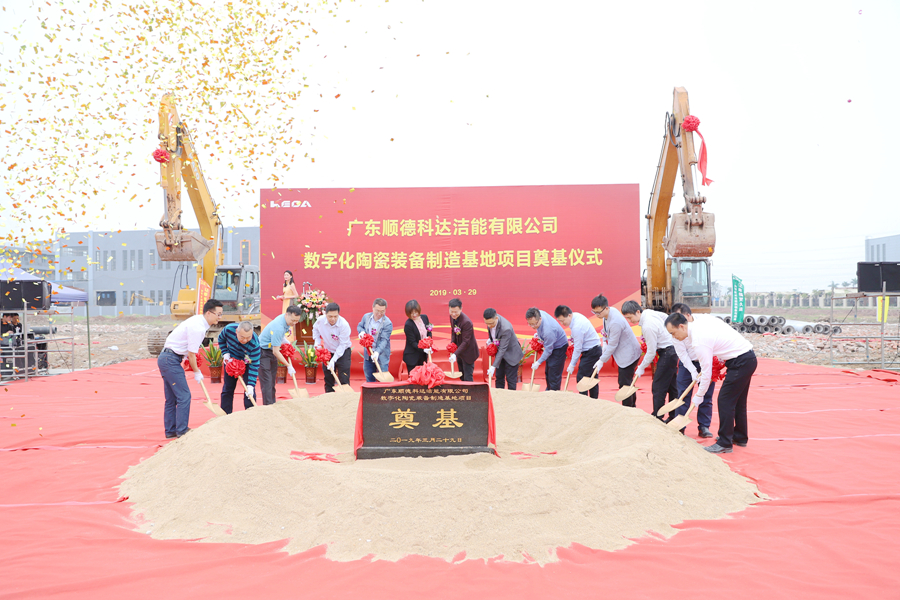 3月29日,廣東順德科達(dá)潔能有限公司“數(shù)字化陶瓷裝備制造基地項(xiàng)目”在順德區(qū)倫教街道世龍工業(yè)區(qū)舉行隆重的奠基儀式。順德區(qū)經(jīng)濟(jì)促進(jìn)局副局長曾利平、順德區(qū)科學(xué)技術(shù)局副局長吳慶強(qiáng)、佛山市自然資源局順德東部規(guī)劃管理局副局長賴鋒、倫教街道黨工委副書記王星海等順德區(qū)及倫教街道各級(jí)政府領(lǐng)導(dǎo),科達(dá)潔能總裁吳木海、副總裁周鵬,整線工程事業(yè)部總經(jīng)理陳水福,以及各施工、監(jiān)理單位、科達(dá)員工近100人一同見證了該項(xiàng)目的奠基儀式。