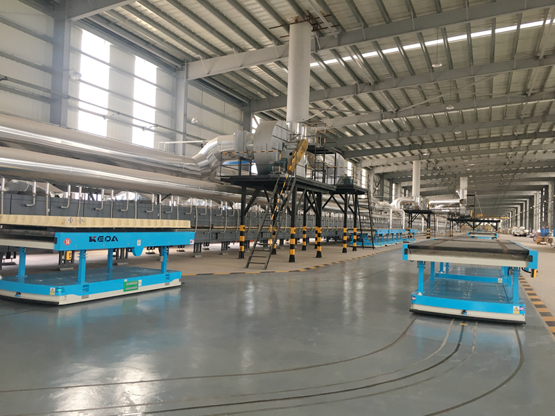 作為國內(nèi)采用輥道窯燒成工藝開發(fā)并成功實現(xiàn)客戶規(guī)?;慨a(chǎn)的機械裝備企業(yè),科達在內(nèi)蒙古建能興輝發(fā)泡陶瓷項目的基礎(chǔ)上,再次實現(xiàn)了自我超越,福建德勝整線項目自動化程度更高,除鋪紙工序外全部實現(xiàn)機器代人,以工業(yè)4.0的高規(guī)格標準打造現(xiàn)代化的陶瓷智能生產(chǎn)整線。