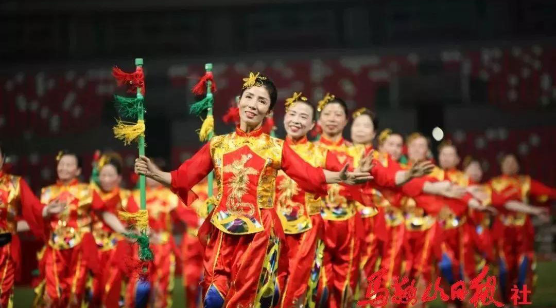 在馬鞍山市委書記張岳峰宣布馬鞍山市第十二屆運動會正式開幕之后,運動員、裁判員代表依次登場宣誓,隨后開幕式文體表演正式拉開了帷幕。開幕式文體表演運用了廣場舞、健身氣功、木蘭扇、太極拳等多種體育健身形式與打蓮湘等地方非遺相結(jié)合,實現(xiàn)了文體表演的運動性、觀賞性和地域性相融合,彰顯出了濃郁的地方特色,為馬鞍山市市民獻上了一場精彩的體育文化盛宴!