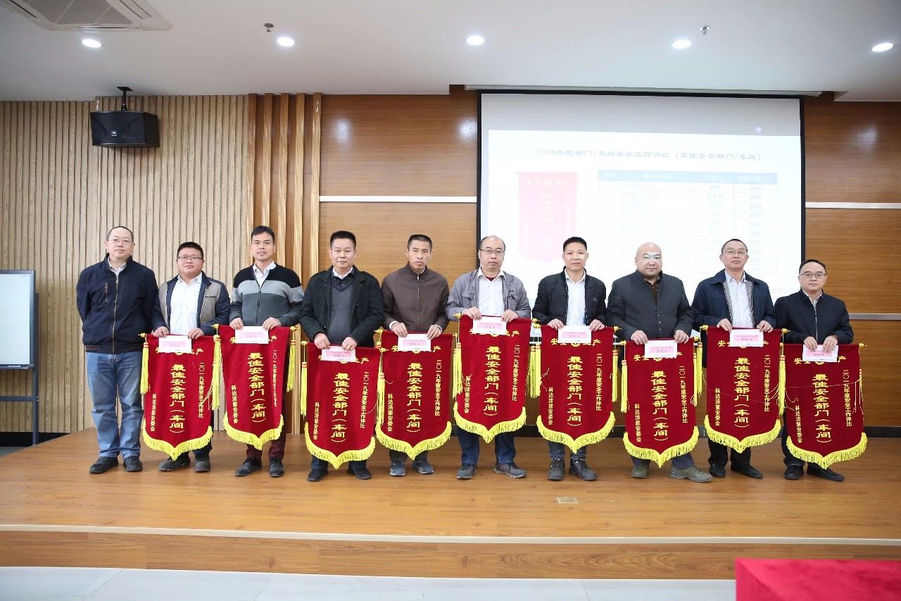 公司各經營單位負責人及代表先后發(fā)言,各自回顧了本單位全年安消環(huán)工作的得失,分析、總結了工作上存在的不足,提出了整改措施,并對2020年安委會工作建言獻策。多個單位均務實地提出了2020年力爭實現本單位“零工傷、零事故”的目標。為大力表彰安消環(huán)工作先進,樹立公司內部標桿和榜樣,公司安委會隆重舉行了2019年第四季度優(yōu)秀安全部門(車間)、安全班組和2019年度安全工作優(yōu)秀經營單位、年度最大進步單位、年度最佳安全部門(車間)、年度優(yōu)秀班組和年度最佳安全員。頒獎儀式在激昂、催人奮進的音樂聲中歡快進行,生產供應中心總助付景源、成型事業(yè)部總助崔麗雅、生產供應中心總經理毛清、配件事業(yè)部總經理隋旭東、公司副總裁周鵬、陳村鎮(zhèn)安監(jiān)分局副局長羅柳波分別為獲得四季度和年度優(yōu)秀單位及個人頒發(fā)錦旗(證書)和獎金。獲獎優(yōu)秀代表應邀發(fā)言分享安全工作經驗和心得。