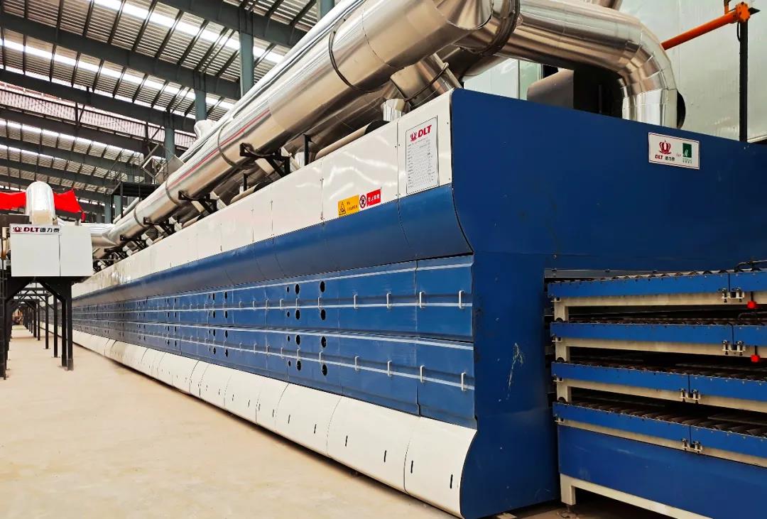 窯爐采用流線全覆蓋結(jié)構(gòu),結(jié)合優(yōu)質(zhì)航天級(jí)納米隔熱保溫,配以先進(jìn)蓄熱式燒嘴及助燃風(fēng)加熱節(jié)能系統(tǒng)、傳動(dòng)運(yùn)行控制系統(tǒng)、保溫加強(qiáng)系統(tǒng)的應(yīng)用外,還運(yùn)用了德力泰專(zhuān)利技術(shù)DHR(專(zhuān)利號(hào):ZL2016010992314.3)高效余熱回收接力加熱系統(tǒng)?;厥沼酂嶙銐蚬?yīng)四層干燥、窯前干燥和釉線干燥,所有干燥無(wú)需點(diǎn)燃燒機(jī),實(shí)現(xiàn)窯爐尾部冷卻“全利用,零排放”。