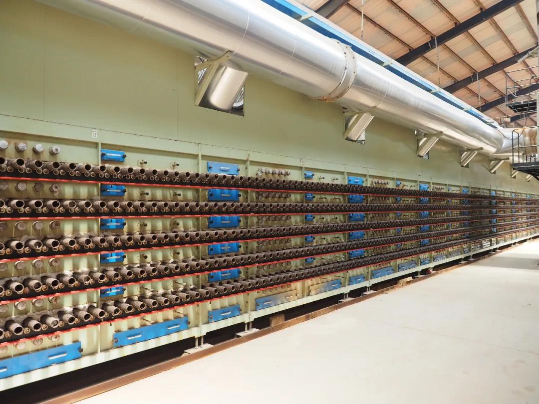 “上面這些都是省人的地方,但在減少用工的同時,我們的生產(chǎn)效率和品質(zhì)并未降低,科達KD10008壓機壓制速度快;五層干燥器用窯爐余熱并對熱風(fēng)重復(fù)循環(huán)使用,提高熱風(fēng)的使用效率;窯爐燒出來的磚型、平整度都很好,基本無爛磚?!敝苊髁琳f。