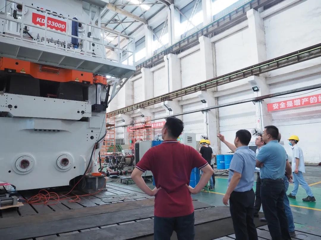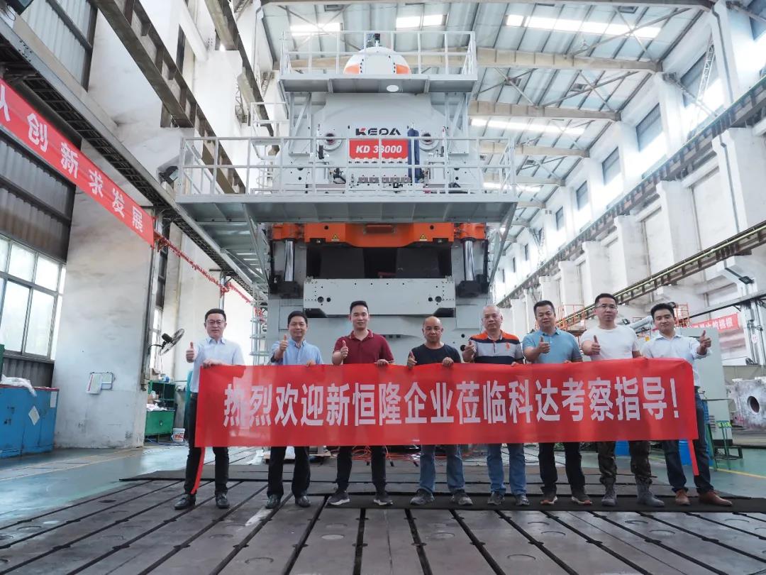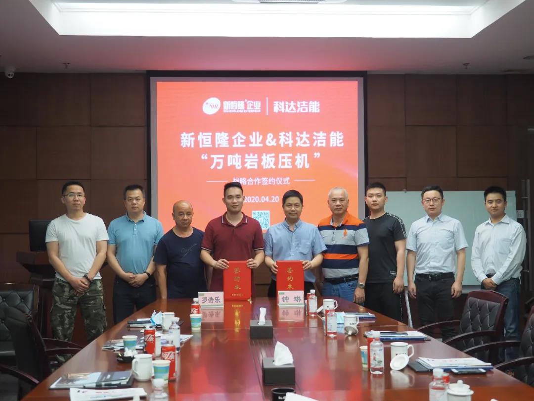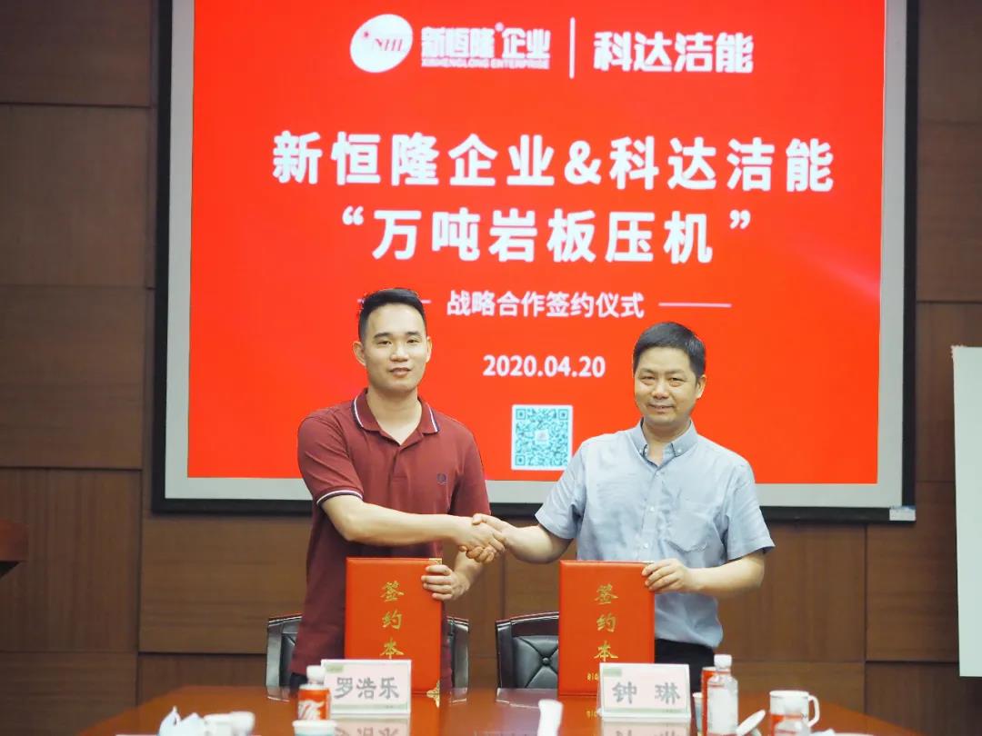 4月20日,新恒隆企業(yè)三水研發(fā)及生產(chǎn)基地總經(jīng)理羅浩樂(lè)帶領(lǐng)生產(chǎn)管理團(tuán)隊(duì)一行來(lái)訪科達(dá),科達(dá)營(yíng)銷(xiāo)總監(jiān)鐘琳、廣東銷(xiāo)區(qū)總經(jīng)理裴樹(shù)元等熱情接待了到訪來(lái)賓,并陪同參觀了科達(dá)壓機(jī)車(chē)間、拋光線及窯爐車(chē)間。在隨后的簽約儀式上,羅浩樂(lè)與鐘琳代表雙方正式簽署了“萬(wàn)噸巖板壓機(jī)”戰(zhàn)略合作合同。