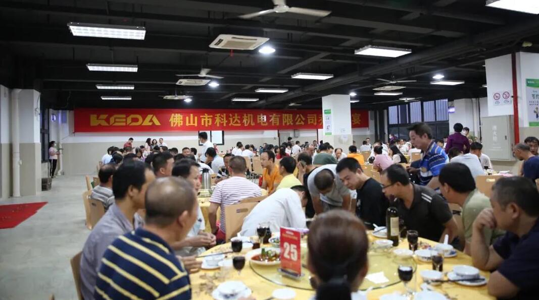 8月18日,雨后的傍晚清風(fēng)送爽,佛山市科達(dá)機(jī)電有限公司在完成全面搬遷后,在順德倫教新址員工食堂舉辦喬遷晚宴??七_(dá)制造總經(jīng)理?xiàng)顚W(xué)先及各子公司、經(jīng)營單位、國內(nèi)外營銷、總部職能部門等主要負(fù)責(zé)人受邀出席晚宴,佛山市科達(dá)機(jī)電總經(jīng)理陳水福及全體員工近300人齊聚一堂共享盛宴!