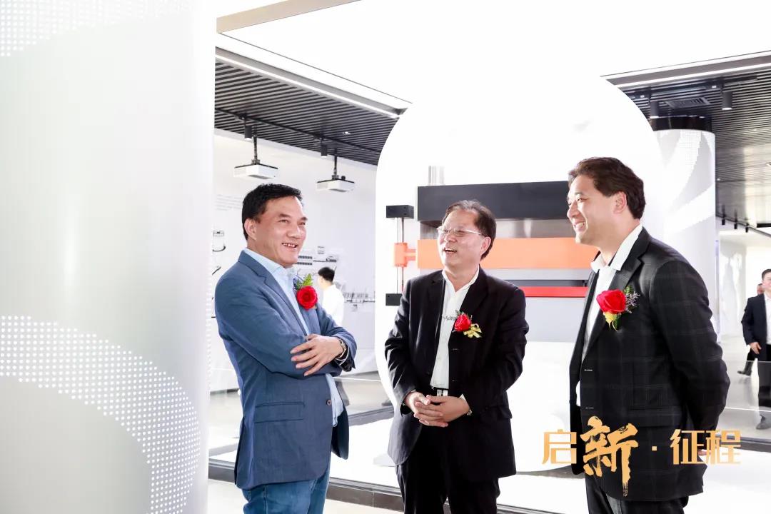 佛山市工商業(yè)聯(lián)合會(huì)主席、廣東新明珠陶瓷集團(tuán)有限公司董事長(zhǎng)兼總裁葉德林,全國(guó)人大代表、廣東唯美陶瓷有限公司董事長(zhǎng)黃建平,佛山市委統(tǒng)戰(zhàn)部副部長(zhǎng)、佛山市工商業(yè)聯(lián)合會(huì)(總商會(huì))黨組書記李德,順德區(qū)委常委周旭,順德區(qū)科學(xué)技術(shù)局黨組書記、局長(zhǎng)譚素,順德區(qū)經(jīng)濟(jì)促進(jìn)局黨組書記、局長(zhǎng)吳顯強(qiáng),陳村鎮(zhèn)黨委書記黃志捷,陳村鎮(zhèn)黨委副書記、鎮(zhèn)長(zhǎng)容佰輝,廣東省建筑材料行業(yè)協(xié)會(huì)常務(wù)副會(huì)長(zhǎng)、廣東陶瓷協(xié)會(huì)會(huì)長(zhǎng)陳環(huán),廣東省建筑材料行業(yè)協(xié)會(huì)創(chuàng)會(huì)會(huì)長(zhǎng)吳一岳,廣東省機(jī)械工程學(xué)會(huì)常務(wù)副理事長(zhǎng)兼秘書長(zhǎng)、教授劉奕華,廣東省機(jī)械工程學(xué)會(huì)副理事長(zhǎng)、佛山市機(jī)械工程學(xué)會(huì)理事長(zhǎng)范彥斌,佛山市企業(yè)聯(lián)合會(huì)執(zhí)行會(huì)長(zhǎng)楊望成,佛山市陶瓷行業(yè)協(xié)會(huì)會(huì)長(zhǎng)、廣東宏宇集團(tuán)有限公司董事長(zhǎng)梁桐燦,蒙娜麗莎集團(tuán)股份有限公司董事長(zhǎng)蕭華,佛山歐神諾陶瓷有限公司總裁丁同文,廣東博德精工建材有限公司董事長(zhǎng)葉榮恒,廣東省企業(yè)聯(lián)合會(huì)、企業(yè)家協(xié)會(huì)副會(huì)長(zhǎng)、新潤(rùn)成集團(tuán)董事長(zhǎng)關(guān)潤(rùn)啟,廣東鷹牌陶瓷集團(tuán)有限公司總裁林偉……政府及協(xié)會(huì)領(lǐng)導(dǎo)專家,以及幾十家陶瓷行業(yè)舉足輕重的企業(yè)掌舵人親臨現(xiàn)場(chǎng),共同見證科達(dá)總部新大樓的啟用,令儀式現(xiàn)場(chǎng)星光熠熠,盛況空前。