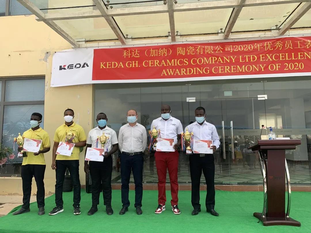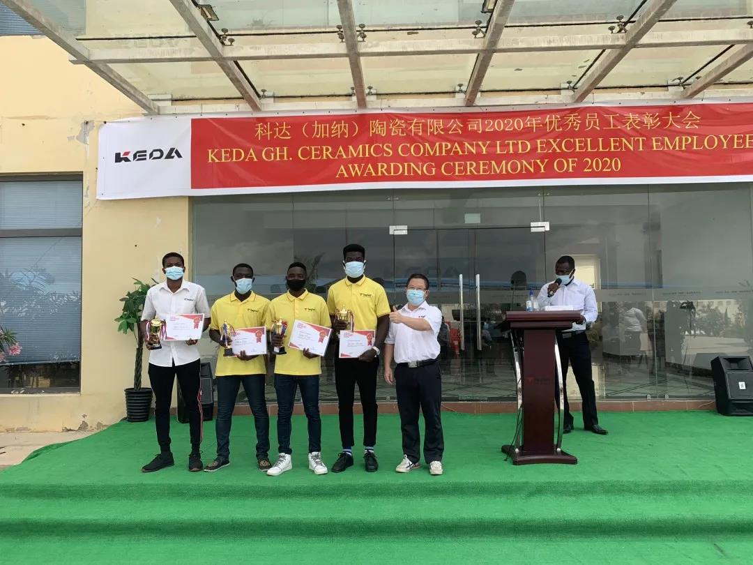 2020年12月18日加納時間上午10點(diǎn)整,科達(dá)(加納)陶瓷2020年優(yōu)秀員工表彰大會在公司綜合樓前廣場隆重舉行。陶瓷廠廠長吳庭及公司經(jīng)營管理人員、優(yōu)秀員工等員工代表120余人出席了活動。