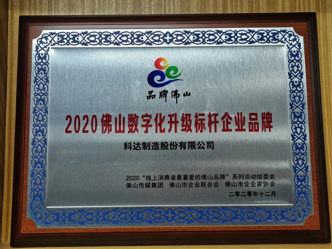 12月23日下午,佛山數(shù)字經(jīng)濟峰會暨品牌佛山授牌儀式舉行,現(xiàn)場揭曉了2020“線上消費者最喜愛的佛山品牌”、2020“佛山數(shù)字化升級標(biāo)桿企業(yè)品牌”、2020“品牌佛山榜特色品牌”三大榜單。其中,科達(dá)制造榮獲2020“佛山數(shù)字化升級標(biāo)桿企業(yè)品牌”稱號。