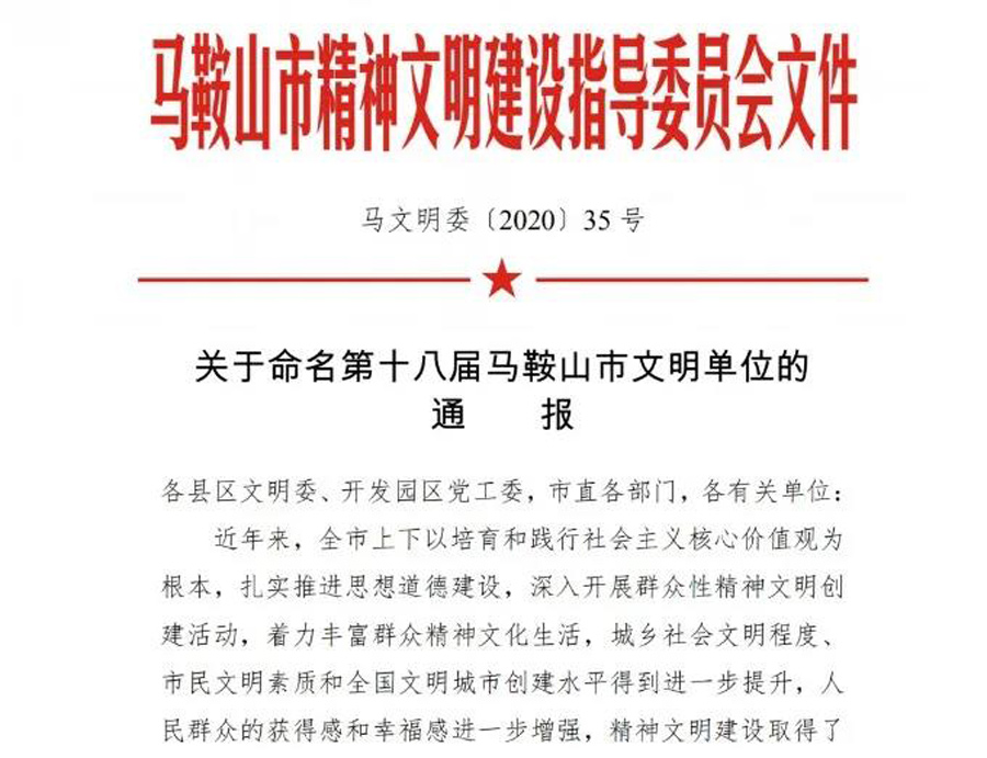 1月4日,馬鞍山市精神文明建設(shè)指導(dǎo)委員會發(fā)布《關(guān)于命名第十八屆馬鞍山市文明單位的通報》(馬文明委〔2020〕35 號),通報指出,為充分展示全市精神文明創(chuàng)建活動成果,進(jìn)一步調(diào)動全社會積極參與精神文明建設(shè)的主動性,決定命名市機關(guān)事務(wù)管理中心等 365個單位為“第十八屆馬鞍山市文明單位”,并公布名單。