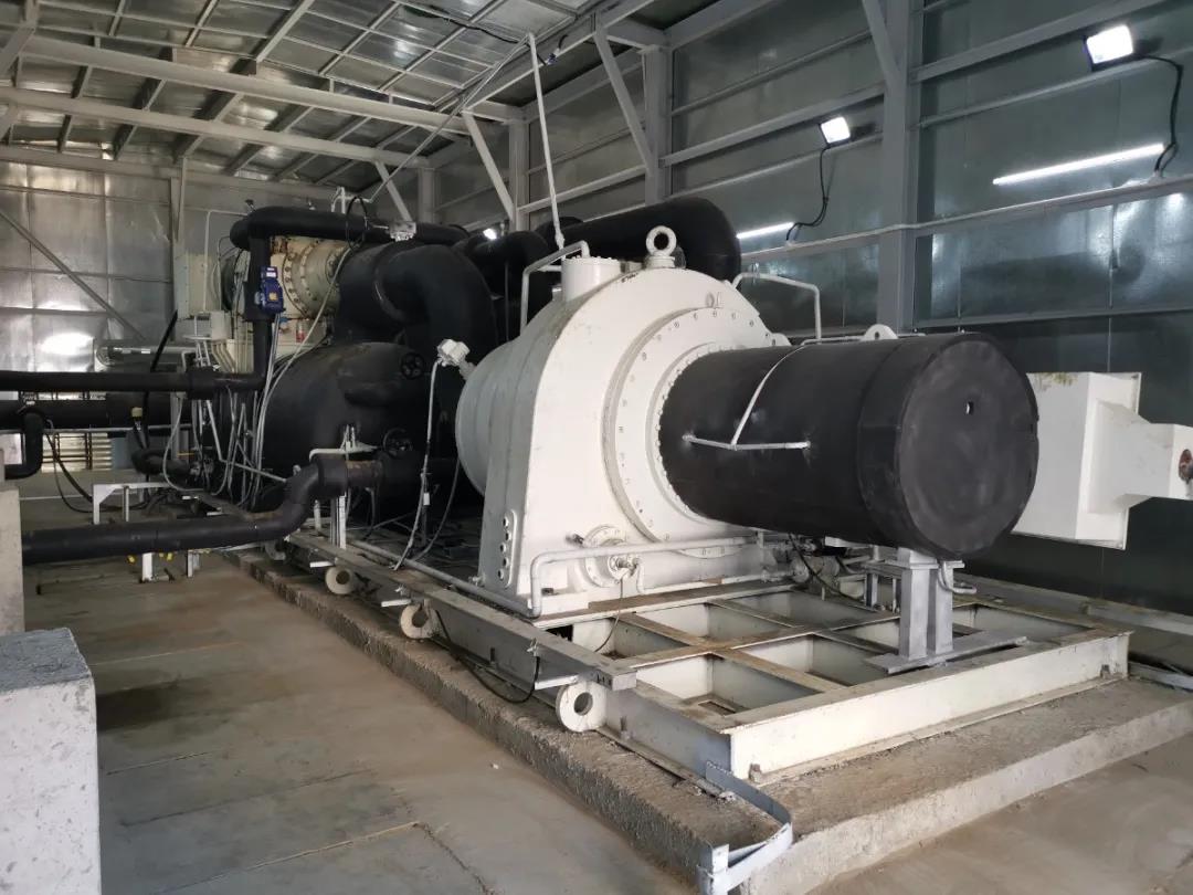 虎渡科達為進一步落實政府節(jié)能減排的工作部署,積極響應(yīng)國家能源安全戰(zhàn)略,開展能源技術(shù)創(chuàng)新,落實能源消費革命實踐,減少霧霾天氣,保衛(wèi)藍天,加快建設(shè)關(guān)系廣大人民群眾生活的民生工程、民心工程?;⒍煽七_歷時兩年,研發(fā)制造出具有高效的電-熱轉(zhuǎn)換方式,制熱能效比高,節(jié)能效果好的兆瓦級離心壓縮機空氣源熱泵設(shè)備。兆瓦級離心壓縮機空氣源熱泵應(yīng)用的創(chuàng)新技術(shù),填補了行業(yè)的技術(shù)空白。采用10kV高壓電源直驅(qū),通過兩臺串聯(lián)的高效離心壓縮機驅(qū)動制熱循環(huán),將空氣中低品位的熱源通過高效離心壓縮機提升高品位的熱量來提供給用戶使用??諝庠礋岜妹x制熱量3000KW以上,目前為約8.4萬㎡居民小區(qū)集中供暖。