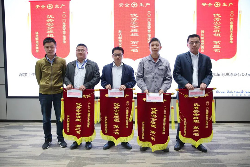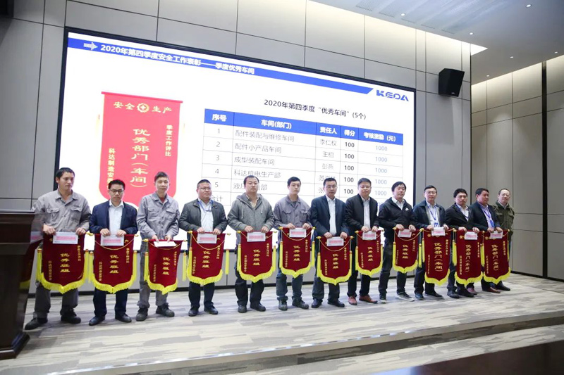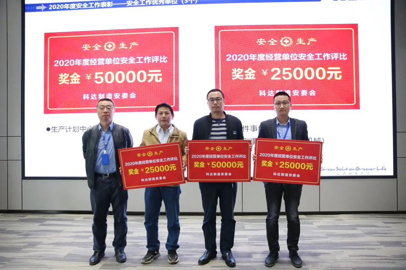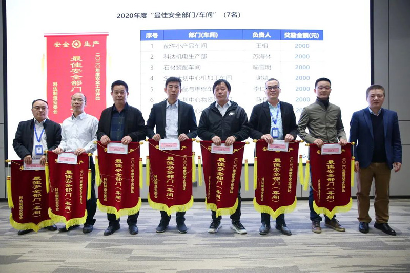 會上,公司安委會還隆重舉行了2020年度安全生產(chǎn)優(yōu)秀經(jīng)營單位、最大進步單位、最佳安全部門(車間)、優(yōu)秀班組和最佳安全員頒獎儀式,各獲獎單位領獎代表和優(yōu)秀個人在歡快與催人奮進的頒獎音樂中登臺領獎,周總、隋總和各經(jīng)營單位負責人為獲獎單位和個人頒發(fā)了錦旗(證書)和獎金。