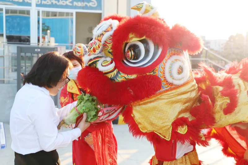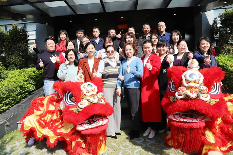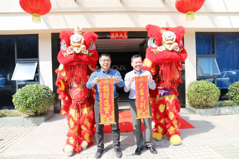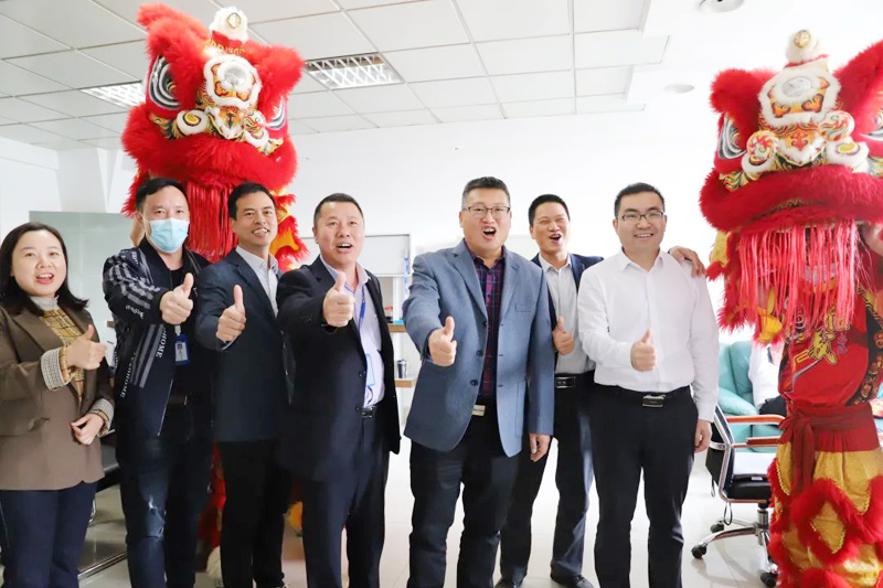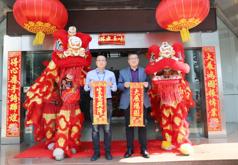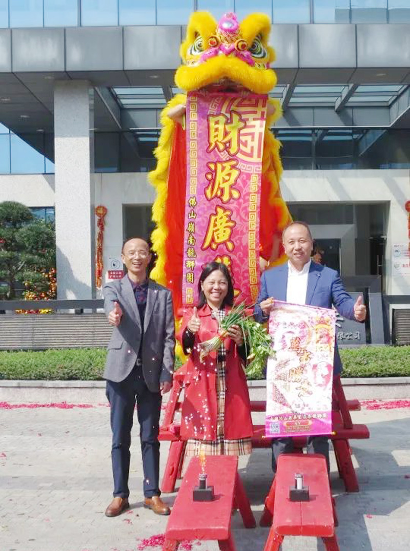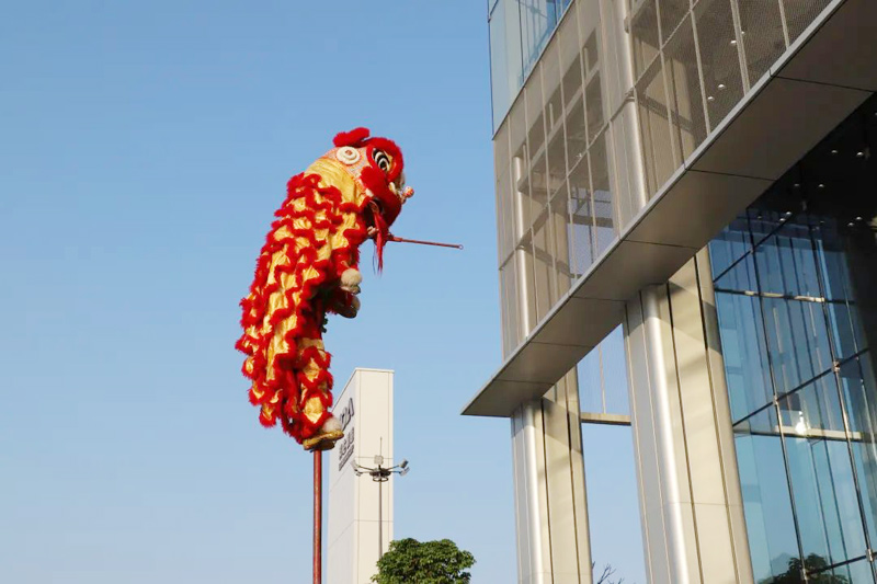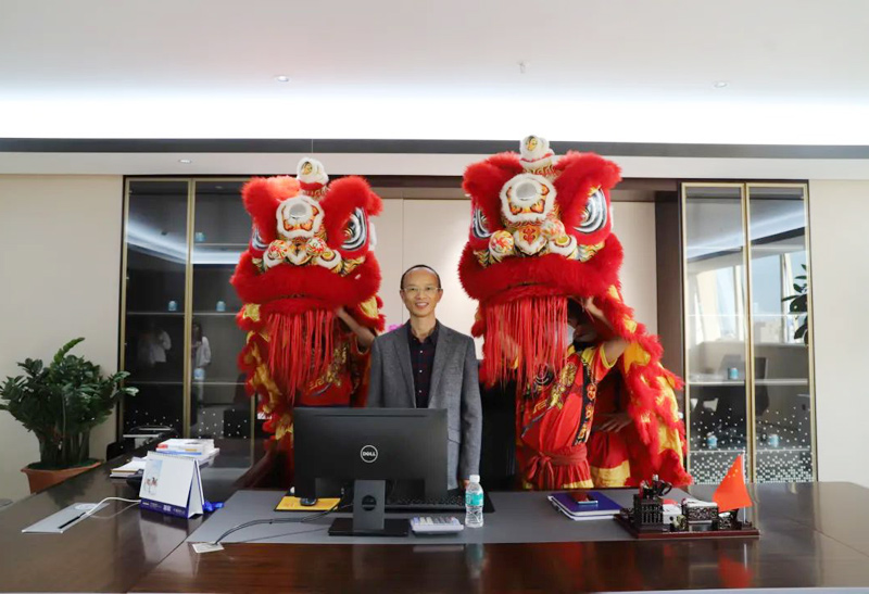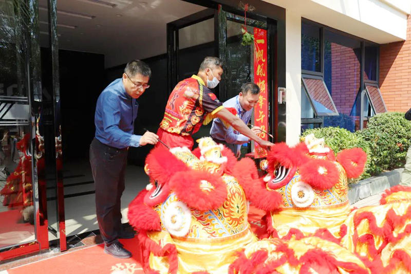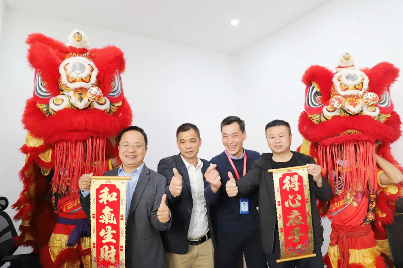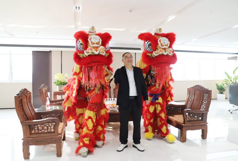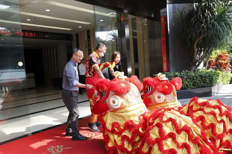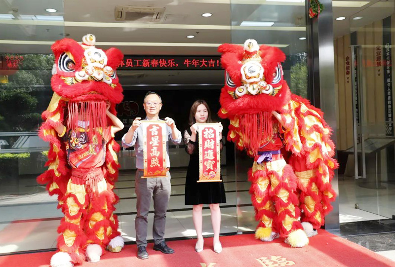 伴隨著起舞的醒獅、喧天的鑼鼓,邊董、楊總等高管代表公司迎春接福,為醒獅“點睛”,祥獅獻瑞,吐出吉祥對聯(lián)“財源廣進,招財進寶”,隨后邊董、楊總等接過醒獅采青,接財接福,寓意新的一年瑞氣臨門、財源滾滾,企業(yè)發(fā)展步步高升。