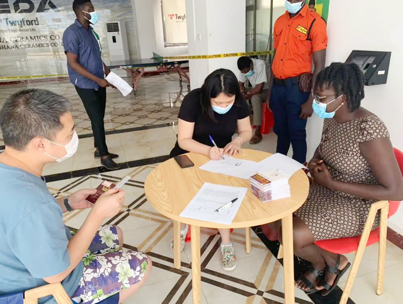 2021年海外第二波疫情來襲,每個(gè)人早已成為命運(yùn)共同體,所有人都在“同行一條船”,雪崩之下沒有無辜者,“公地效應(yīng)”下沒有幸免人。疫情不等人,所有人必須要爭分奪秒與疫情賽跑,經(jīng)科達(dá)(加納)陶瓷廠總經(jīng)理李偉、商務(wù)部門所有員工與加納政府、西部省衛(wèi)生廳協(xié)商,為陶瓷廠員工爭取到第一批500劑免費(fèi)阿斯利康新冠疫苗。