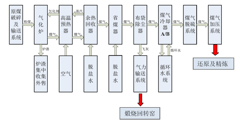 該項目采用的是安徽科達潔能自主研發(fā)的循環(huán)流化床氣化技術(shù),項目建成后,將為云海鎂業(yè)10萬噸金屬鎂冶煉提供100000Nm3/h燃料氣。在該煤氣化裝置中,氣化系統(tǒng)副產(chǎn)飛灰將作為燃料用于回轉(zhuǎn)窯綜合再利用,這極大的提高了煤炭的綜合利用效率,同時也提高了企業(yè)的經(jīng)濟效益。