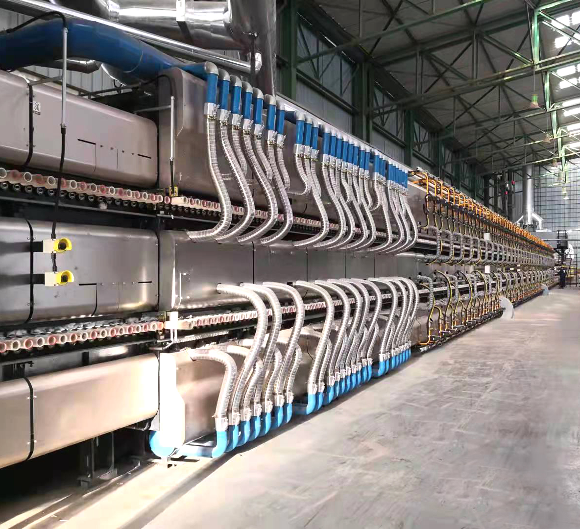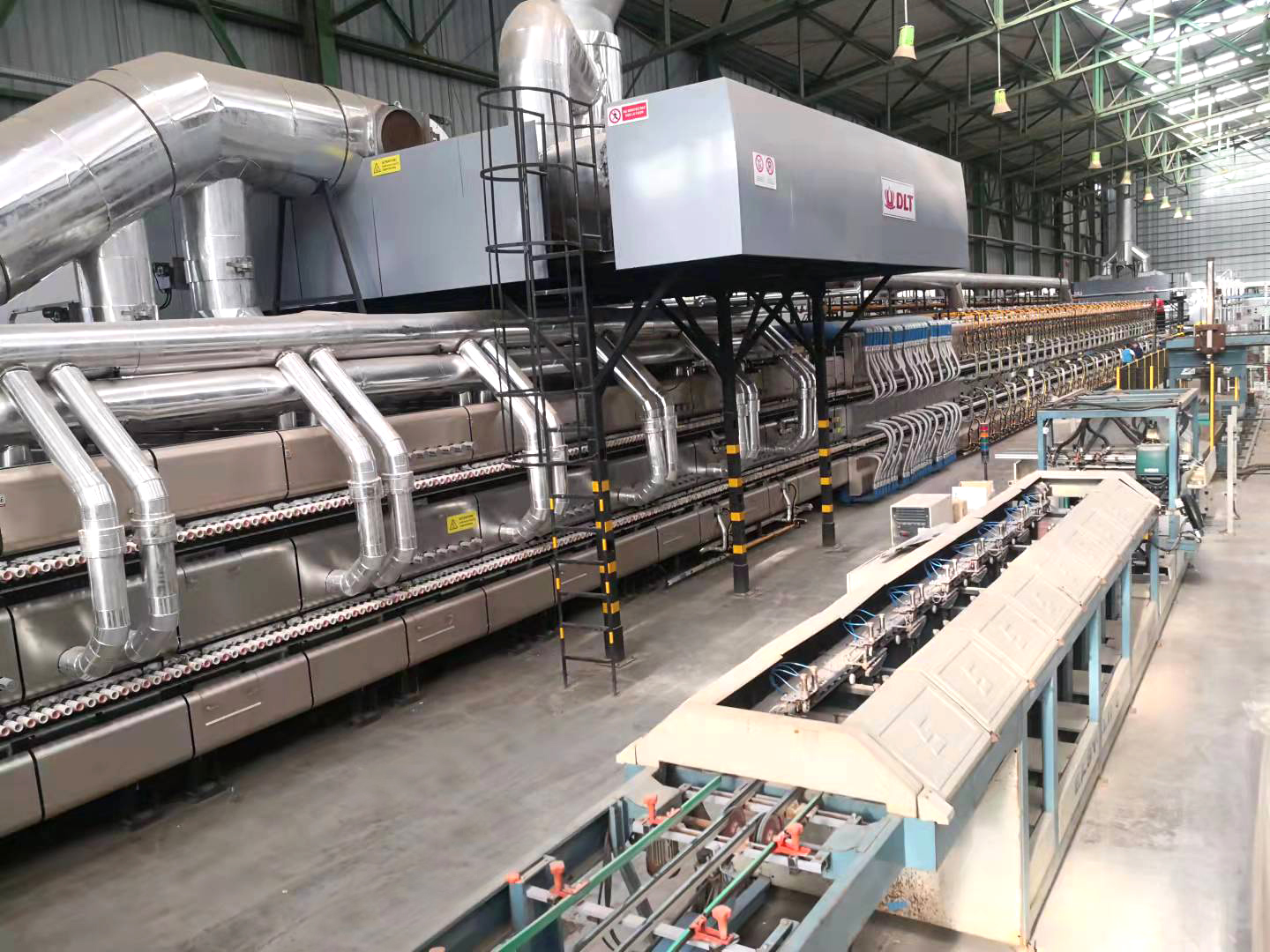 面對客戶高端定位的需求,德力泰成功探索出適應(yīng)北非市場的熱工裝備。該條“工業(yè)4.0能效標(biāo)桿數(shù)智時代”一次燒瓷片雙層窯采用了德力泰專利外觀銀河系面板,運用最新的智能工控系統(tǒng)。既滿足了歐洲生產(chǎn)模式的自動化、柔性化、智能化的高標(biāo)準(zhǔn)要求,又融合了中國制式產(chǎn)量大、定制化程度高等優(yōu)勢。其主要生產(chǎn)規(guī)格為250×400×7mm的一次燒高品質(zhì)瓷片,設(shè)計產(chǎn)能1.2萬m2/天。
