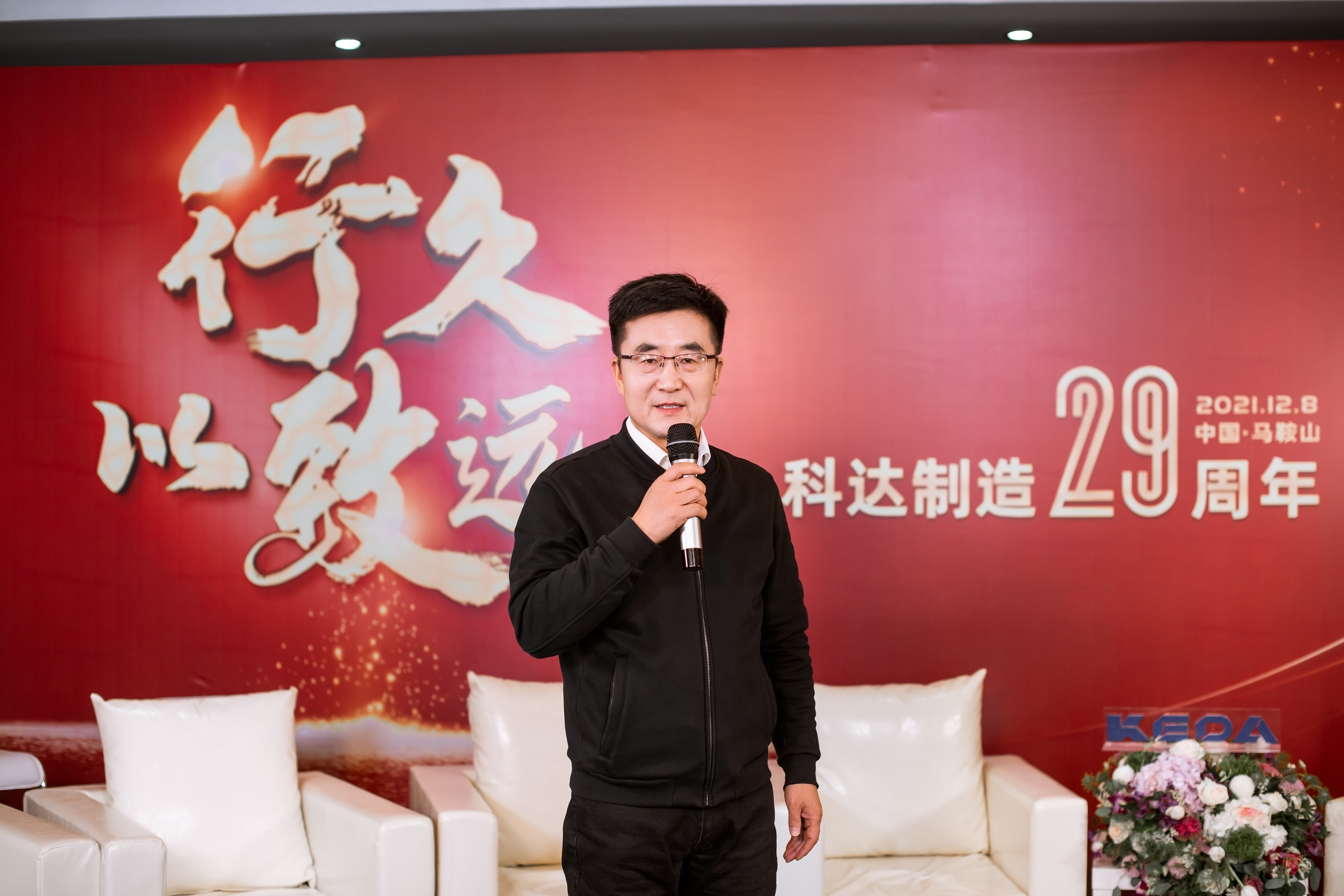 他指出,科達制造在制造業(yè)細分領(lǐng)域已然位列全球前列。安徽基地這兩年一直將“堅守”、“尊嚴”和“榮耀”作為發(fā)展理念,向細分領(lǐng)域做大做強而努力,用“堅守”去贏得“榮耀”。在過去的一年,科達制造安徽基地各個板塊的公司都根據(jù)戰(zhàn)略定位和市場形勢,不斷做出努力和調(diào)整,取得了很大的進步。未來,安徽基地將按照總部的要求,用創(chuàng)新和堅守走出自己的高質(zhì)量發(fā)展之路,同時,要有全球戰(zhàn)略思維,要站得更高,看得更遠,以開放格局來審視所處產(chǎn)業(yè),找準戰(zhàn)略定位。對于安徽基地未來的發(fā)展,必須強調(diào)“人”的重要性,人永遠要放在第一位,加大人才團隊的培養(yǎng)和引進,在人力資源制度上不拘泥于條條框框,進行大膽的突破和創(chuàng)新。此外,作為裝備制造企業(yè),需要進一步加強加工制造能力和智能化的融合度,把握時機夯實未來發(fā)展的基礎(chǔ),用努力迎接科達制造30周年的輝煌!