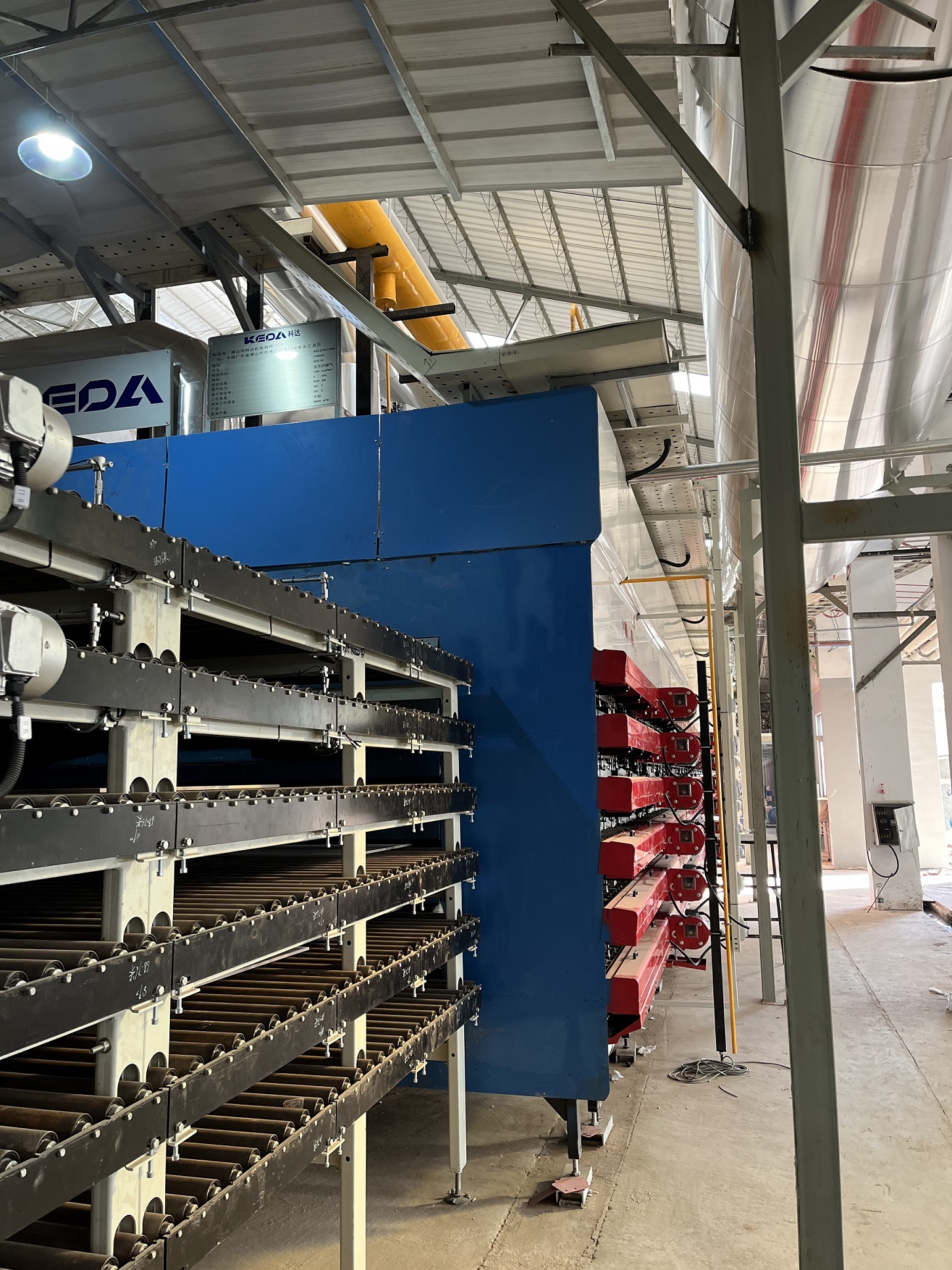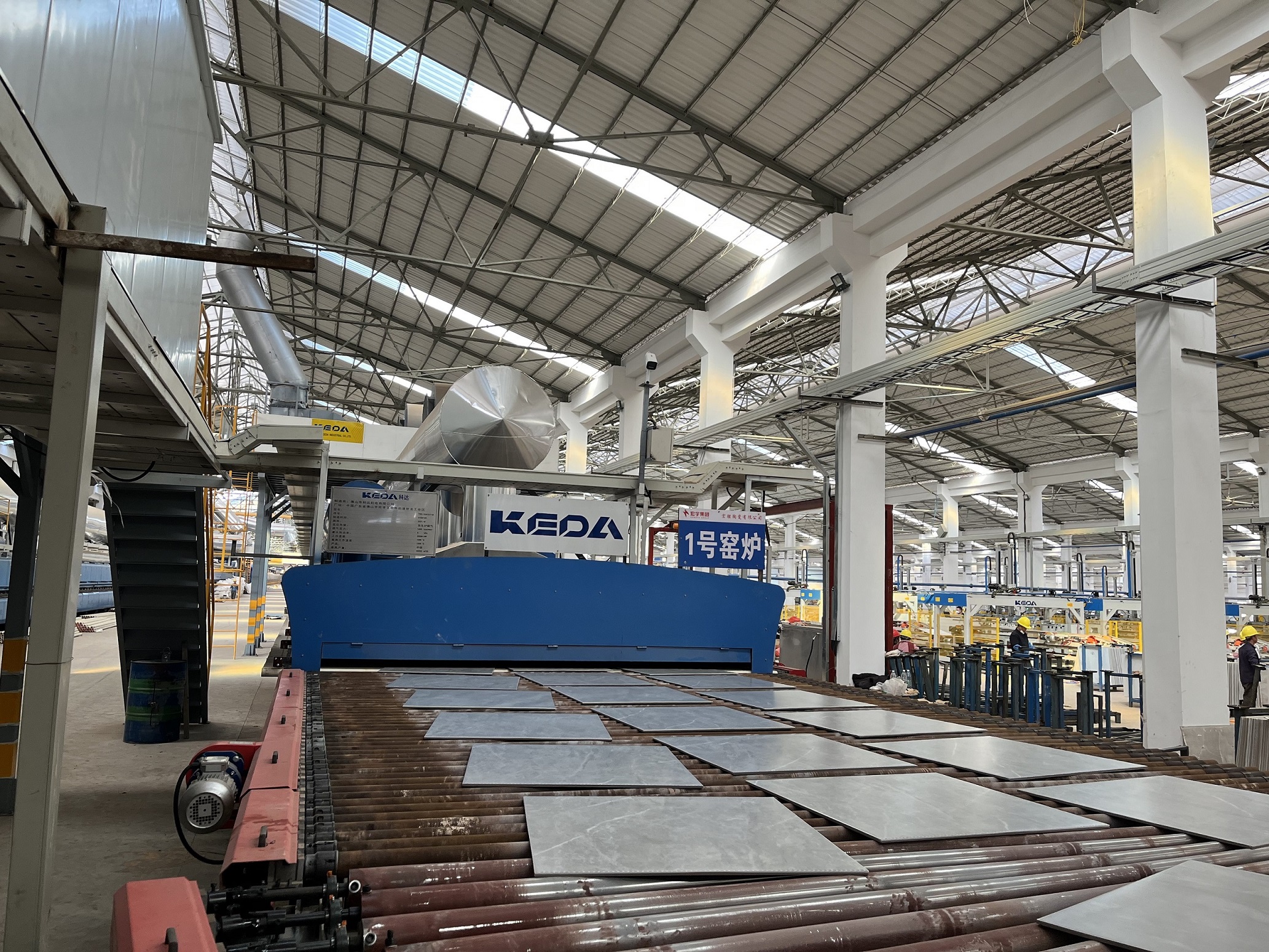 該生產(chǎn)線當(dāng)天便實(shí)現(xiàn)順利投產(chǎn),日產(chǎn)量達(dá)30000㎡(800×800mm拋釉磚)??蛻魧七_(dá)的高效施工、整線產(chǎn)質(zhì)量和自動化智能化程度均表示非常滿意。
