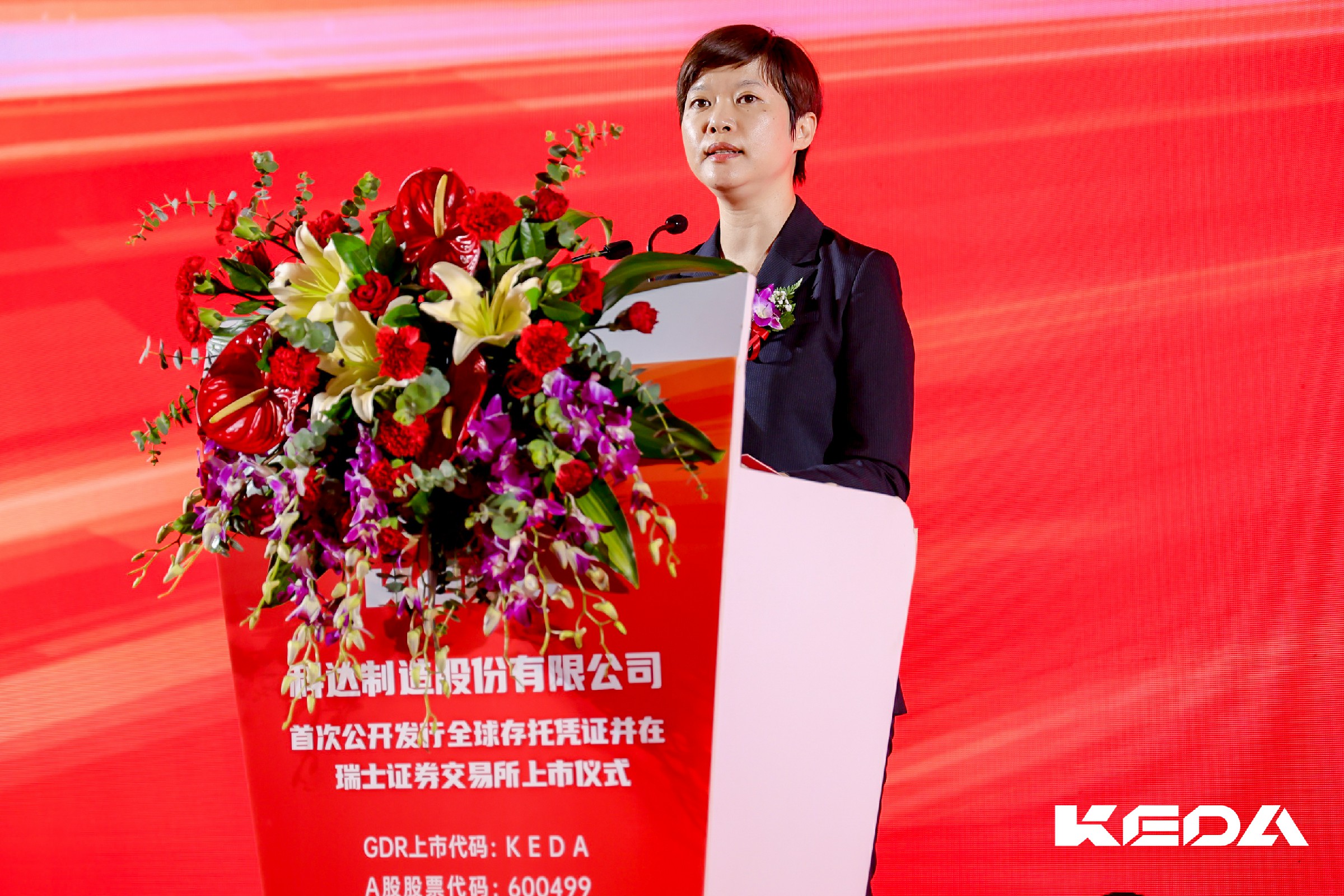 佛山市副市長周紫霄表示,“這是我第一次在晚上參加上市儀式,讓我不僅看到了繁星閃爍的佛山夜景,也看到了熠熠生輝的佛山企業(yè)。作為佛山本土企業(yè)的代表,科達(dá)制造首發(fā)GDR并在瑞士證券交易所上市是落實‘全球化’戰(zhàn)略和踐行國家‘一帶一路’倡議的重要舉措,將進(jìn)一步推動中國高端制造打入歐洲核心市場?!?/span>