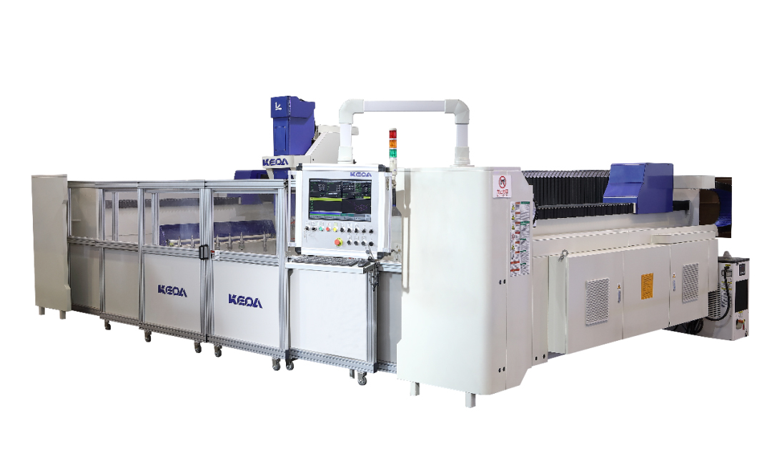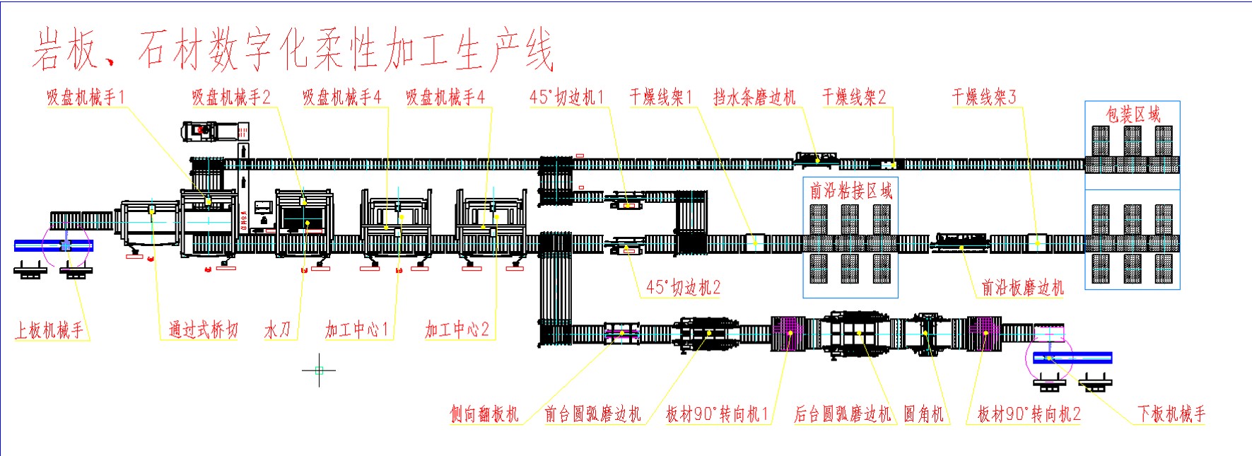 除了核心的橋切加工設備,包括科達智能加工中心、AC五軸水刀、雙邊數(shù)控磨邊成型機、數(shù)控圓角機以及數(shù)控45度磨邊開槽機這些設備組合在一起,科達為行業(yè)提供貼標識別、開孔開料、余料廢料收集、內(nèi)孔成型拋光、外研成型拋光等全自動無人化柔性生產(chǎn)解決方案,可滿足巖板、石材的各種深加工需求。
