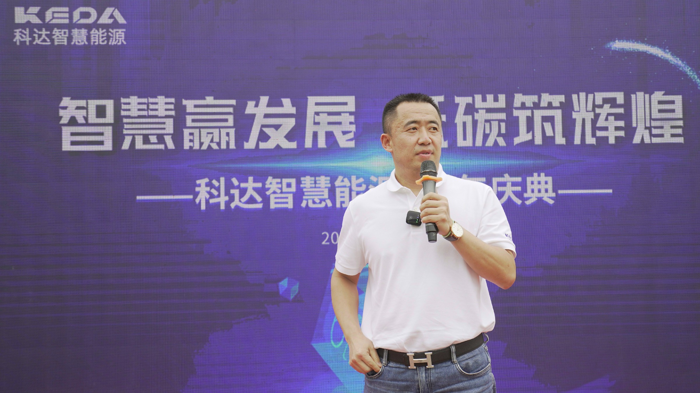 慶典伊始,科達(dá)智慧能源總經(jīng)理同時也是本場慶典活動的主持人梁耀星簡短開場。他首先對到場的所有領(lǐng)導(dǎo)和同事們表示了誠摯的感謝和熱烈的歡迎,隨后邀請科達(dá)智慧能源董事長張峰上臺致辭。