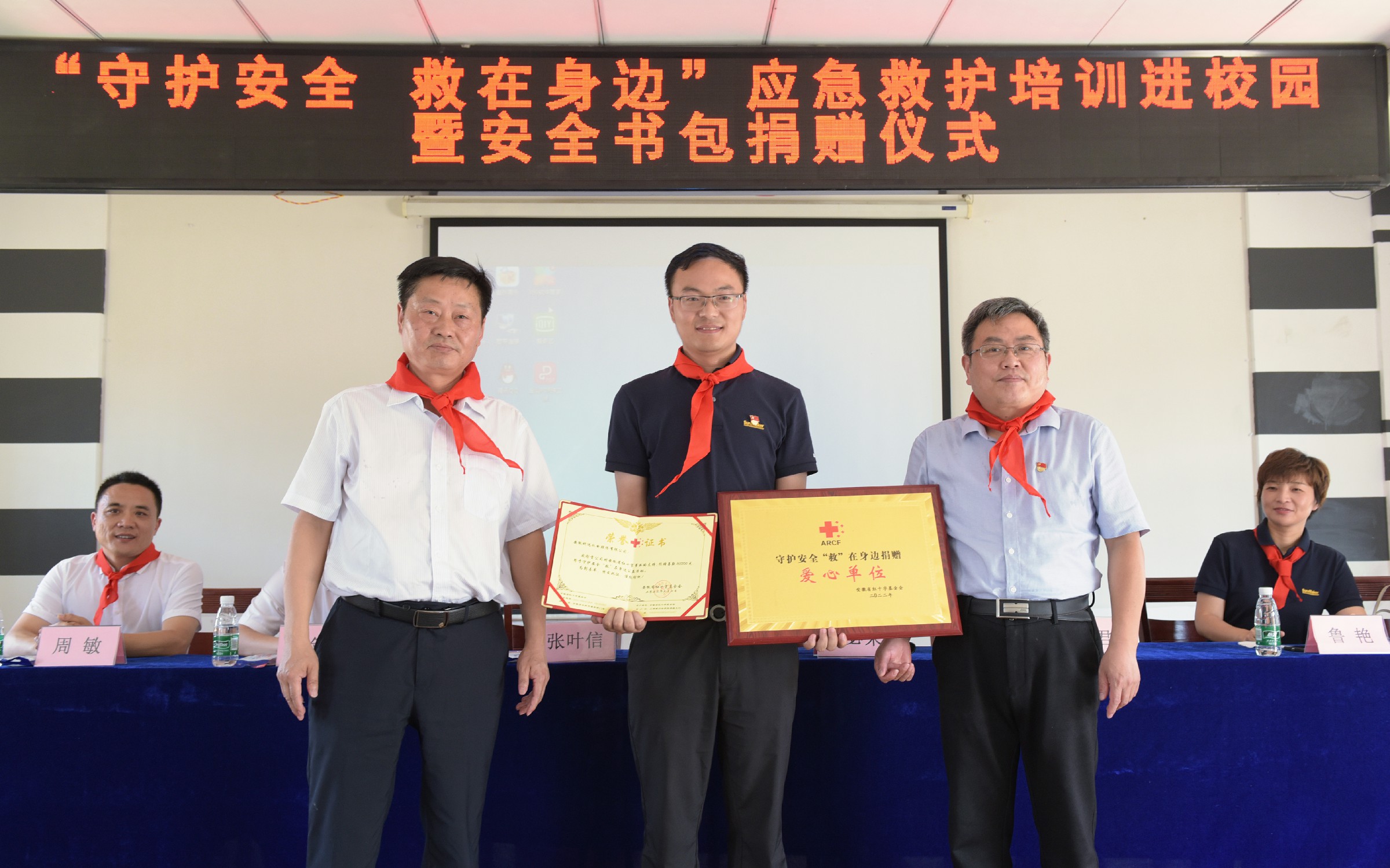 6月15日下午,“守護安全,救在身邊”應急救護培訓公益活動暨安徽科達機電股份有限公司安全防護書包捐贈儀式在馬鞍山市和縣功橋鎮(zhèn)中心小學舉行。馬鞍山市紅十字會常務副會長方必來,和縣副縣長張朝君,功橋鎮(zhèn)鎮(zhèn)長張劍嘯,安徽科達機電總經(jīng)理助理、黨支部書記張葉信及行政人力總監(jiān)魯艷共同出席了捐贈儀式。