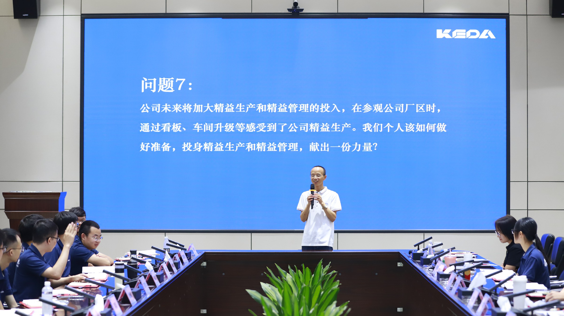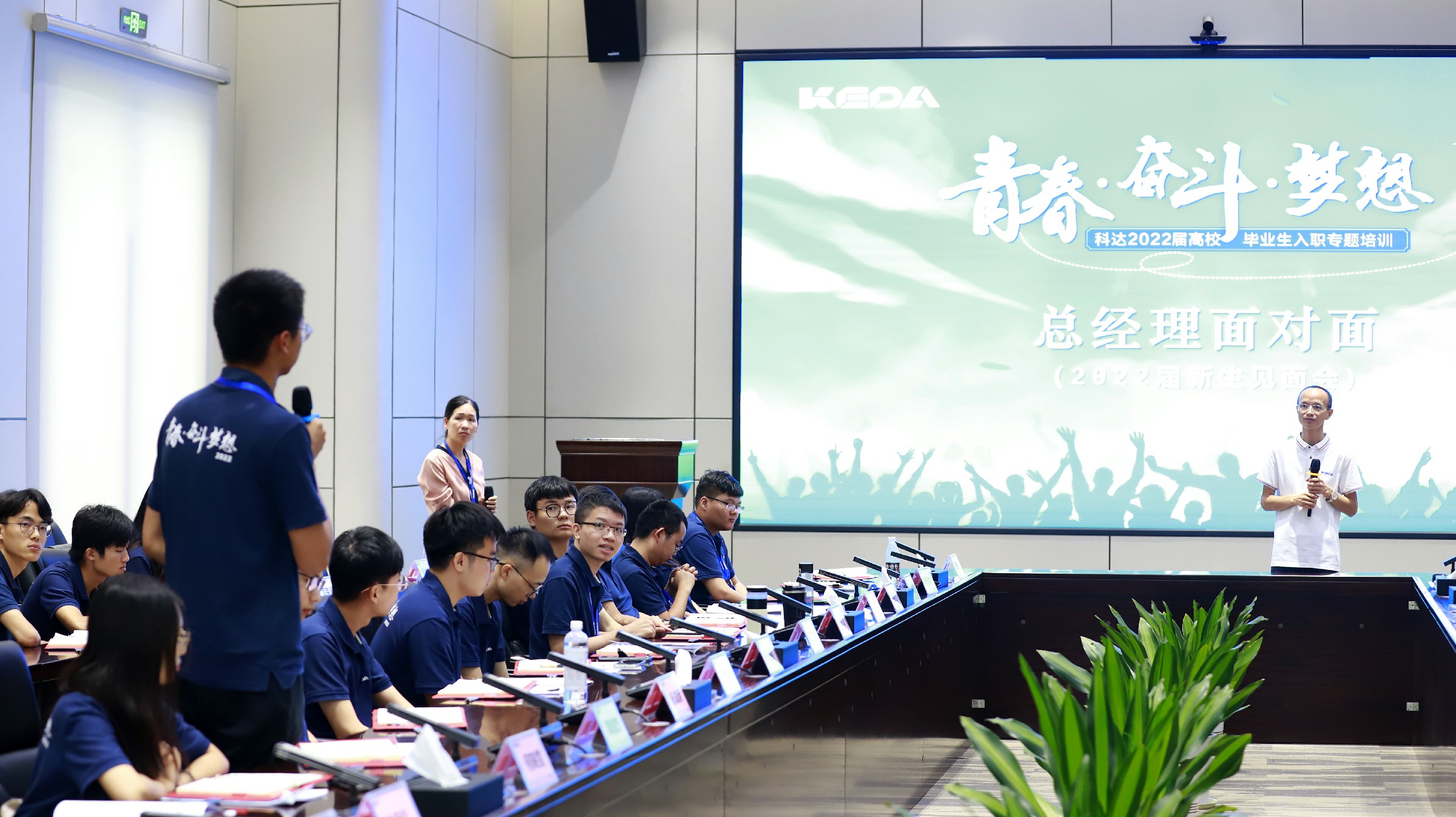 7月9日,2022屆高校畢業(yè)生入職專題培訓的重頭戲——“總經(jīng)理面對面”如期舉行,科達制造董事、總經(jīng)理楊學先與48名新入職的應屆畢業(yè)生親切交流,詳細介紹公司的發(fā)展布局及各板塊的業(yè)務發(fā)展情況,并對畢業(yè)生們提出期望、要求及成長建議。最后,楊總一一解答了大家關心的問題。
