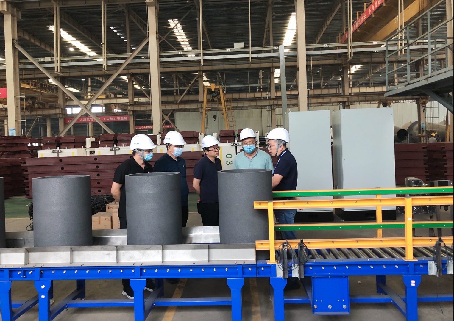 首先,趙董一行到安徽科達(dá)新材料公司實地考察預(yù)炭化回轉(zhuǎn)窯的運行情況,著重了解預(yù)炭化回轉(zhuǎn)窯的占地、能耗、產(chǎn)能及生產(chǎn)成本等信息,隨后前往安徽科達(dá)基地生產(chǎn)車間參觀,了解安徽科達(dá)鋰電裝備公司設(shè)備加工條件及加工能力,并參觀了解安徽科達(dá)鋰電裝備公司自動裝堝系統(tǒng)等情況。