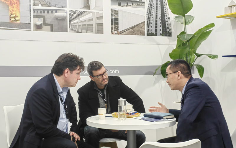 蒸壓加氣混凝土起源于歐洲,在歐洲各國的應(yīng)用相對成熟。近年來,盡管蒸壓加氣混凝土行業(yè)在以日本、中國為代表的亞洲地區(qū)和其他地區(qū)飛速發(fā)展,但很多西方客戶仍然對亞洲蒸壓加氣混凝土裝備的制造水平仍不夠了解。此次德國慕尼黑寶馬展,安徽科達(dá)機(jī)電作為為數(shù)不多的中國展商,并且是唯一一家來自中國的蒸壓加氣混凝土行業(yè)的參展商,與歐洲同行同臺亮相,總經(jīng)理陳新疆先生及首席技術(shù)專家徐順武先生親自為客戶介紹亞洲頂尖的蒸壓加氣混凝土成套系統(tǒng)解決方案,為尋求機(jī)遇和方向的客戶打開了新的視野和思路。