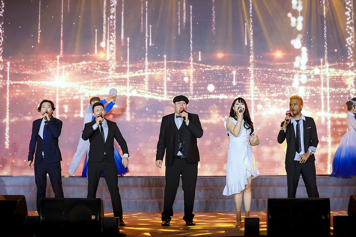 本次晚會也從一個側(cè)面充分體現(xiàn)了科達(dá)“全球化”的成果,意大利、土耳其、印度、非洲等地的本土員工代表出席晚會,并積極參與節(jié)目互動,同時在開場的“幸福變奏曲”環(huán)節(jié)中,全球員工通過云合唱的形式,與現(xiàn)場的科達(dá)員工代表共同唱響了《You raise me up》,揭開了晚會的序幕。在節(jié)目設(shè)計中,也充分體現(xiàn)了國際化元素,外籍歌手亮眼、中英經(jīng)典名曲串燒、中西混搭創(chuàng)意節(jié)目等,無不印證東西方文化互融在科達(dá)得到了充分的實踐。